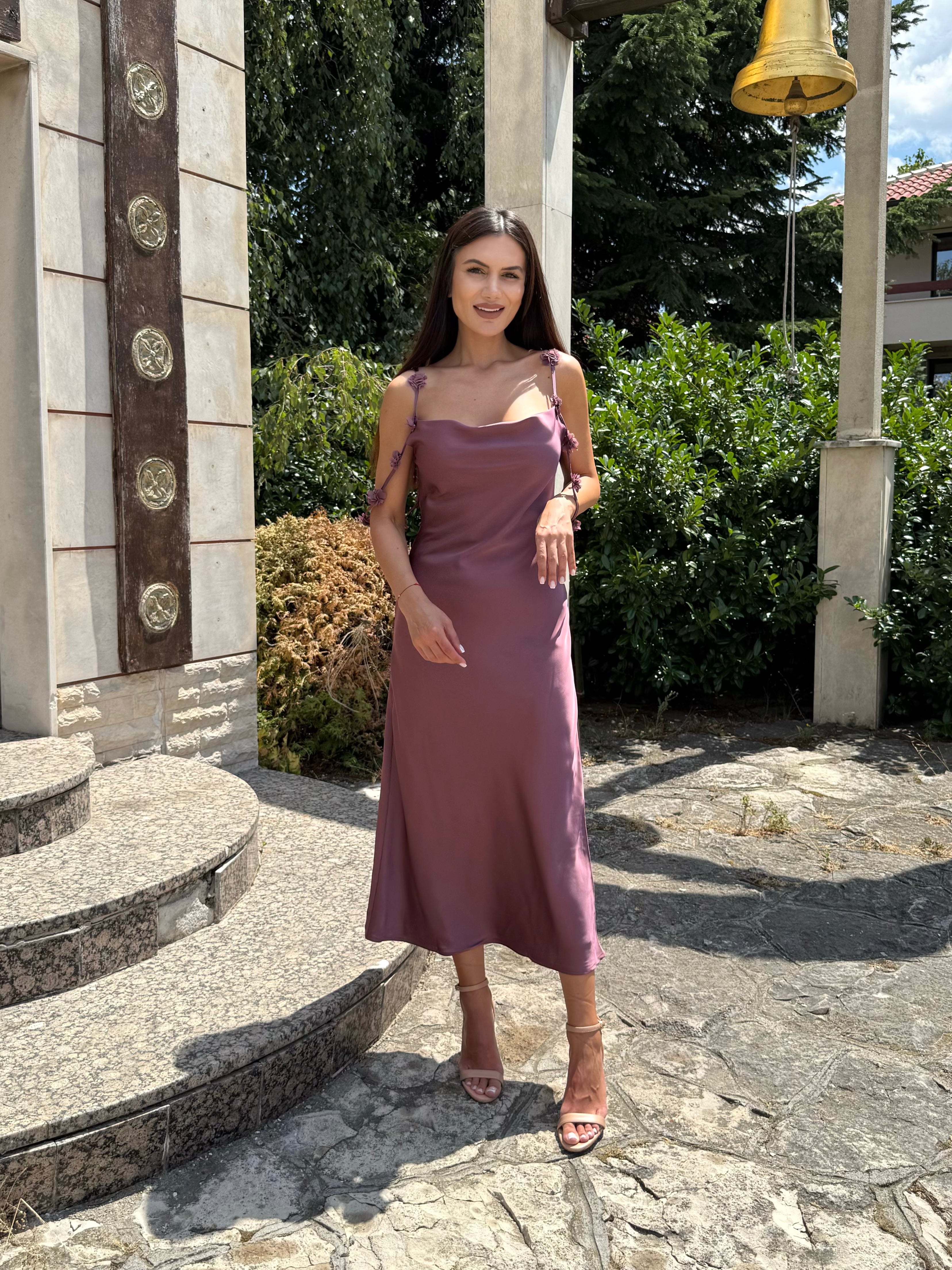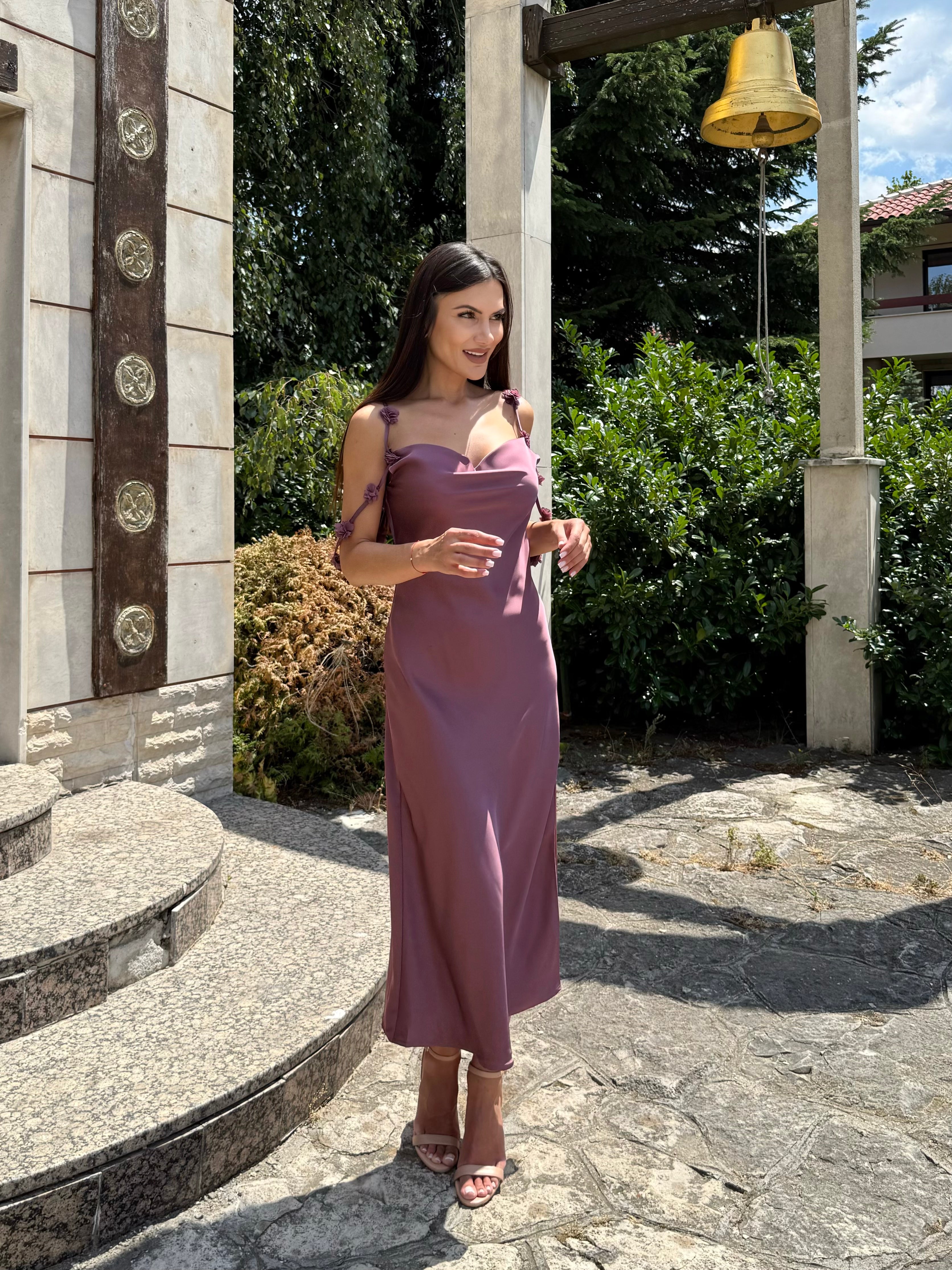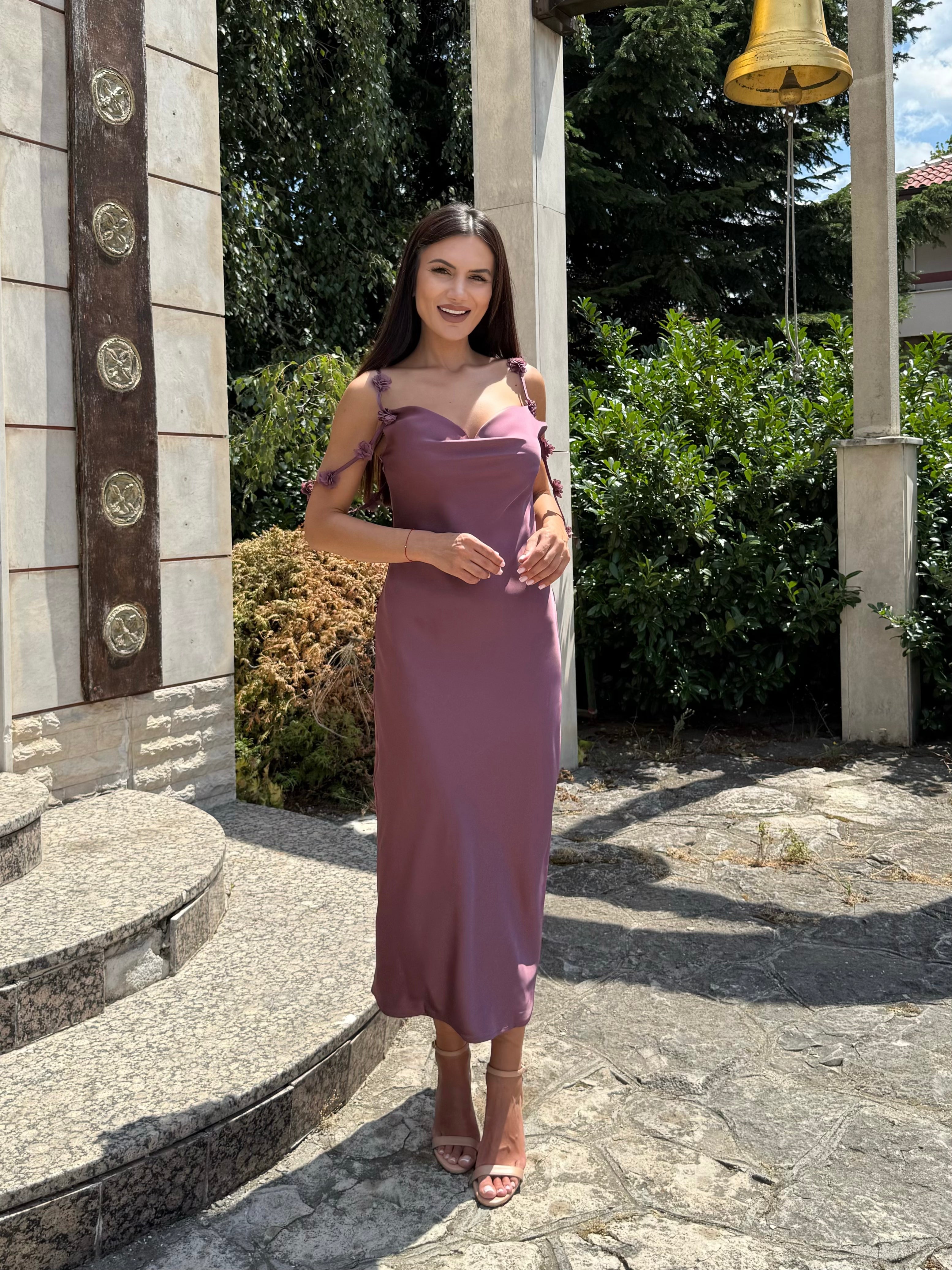 Roché Mauve Luxe – Рокля с панделки в лилаво с розов подтон