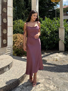 Елегантност с докосване на романтика – Roché Mauve е новата ни интерпретация на класическата рокля с панделки, представена в изискан нюанс Mauve Luxe. Материята е мека и нежно обгръща силуета, създавайки усещане за комфорт и лукс. Декоративните панделки по раменете подчертават женствеността, а изчистената линия на роклята придава неподправен стил.