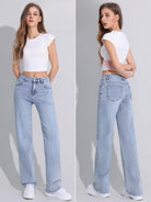 ДЪНКИ Straight-leg с прави крачоли и висока талия. Материята мек и еластичен деним с еластан.