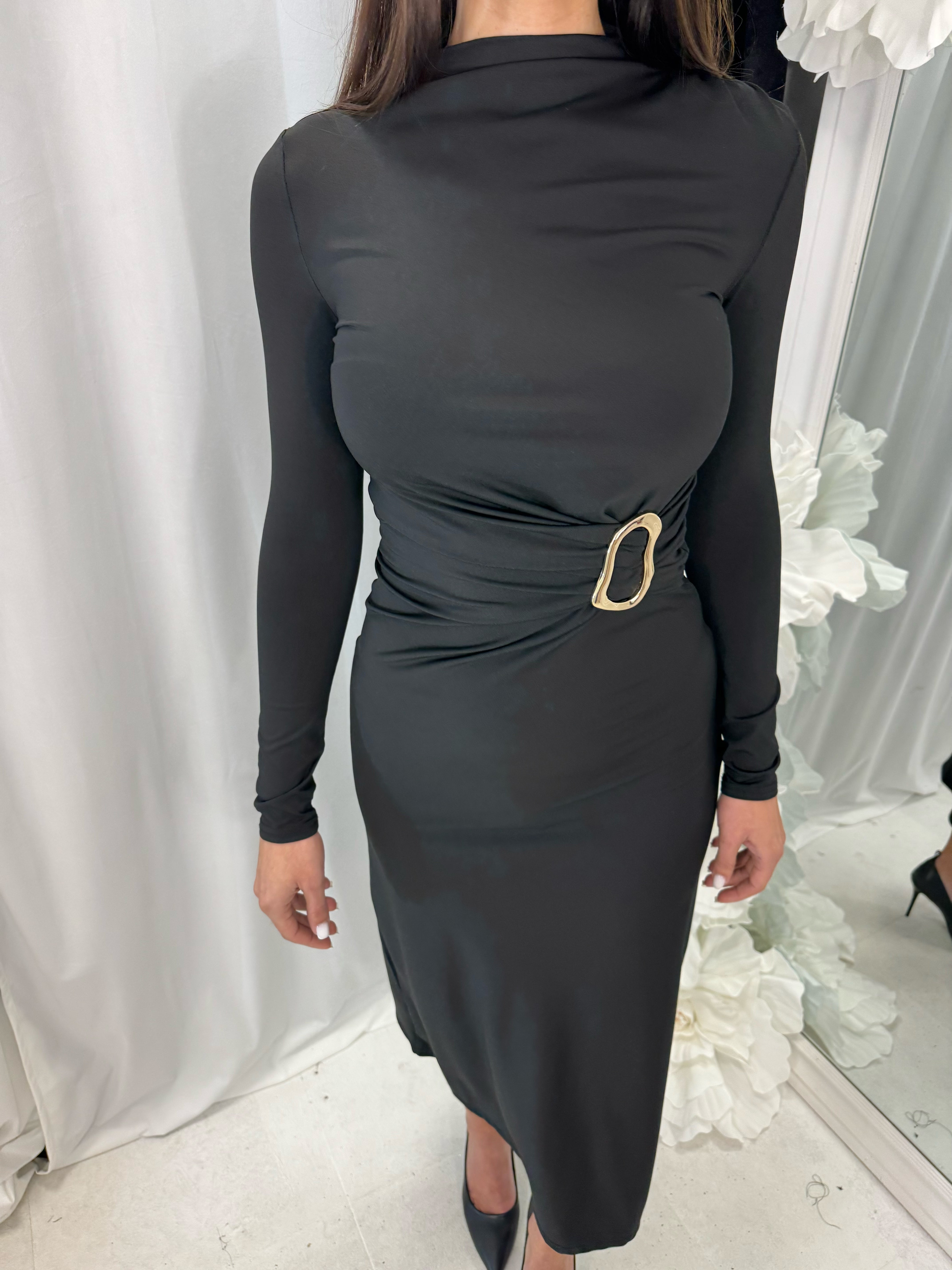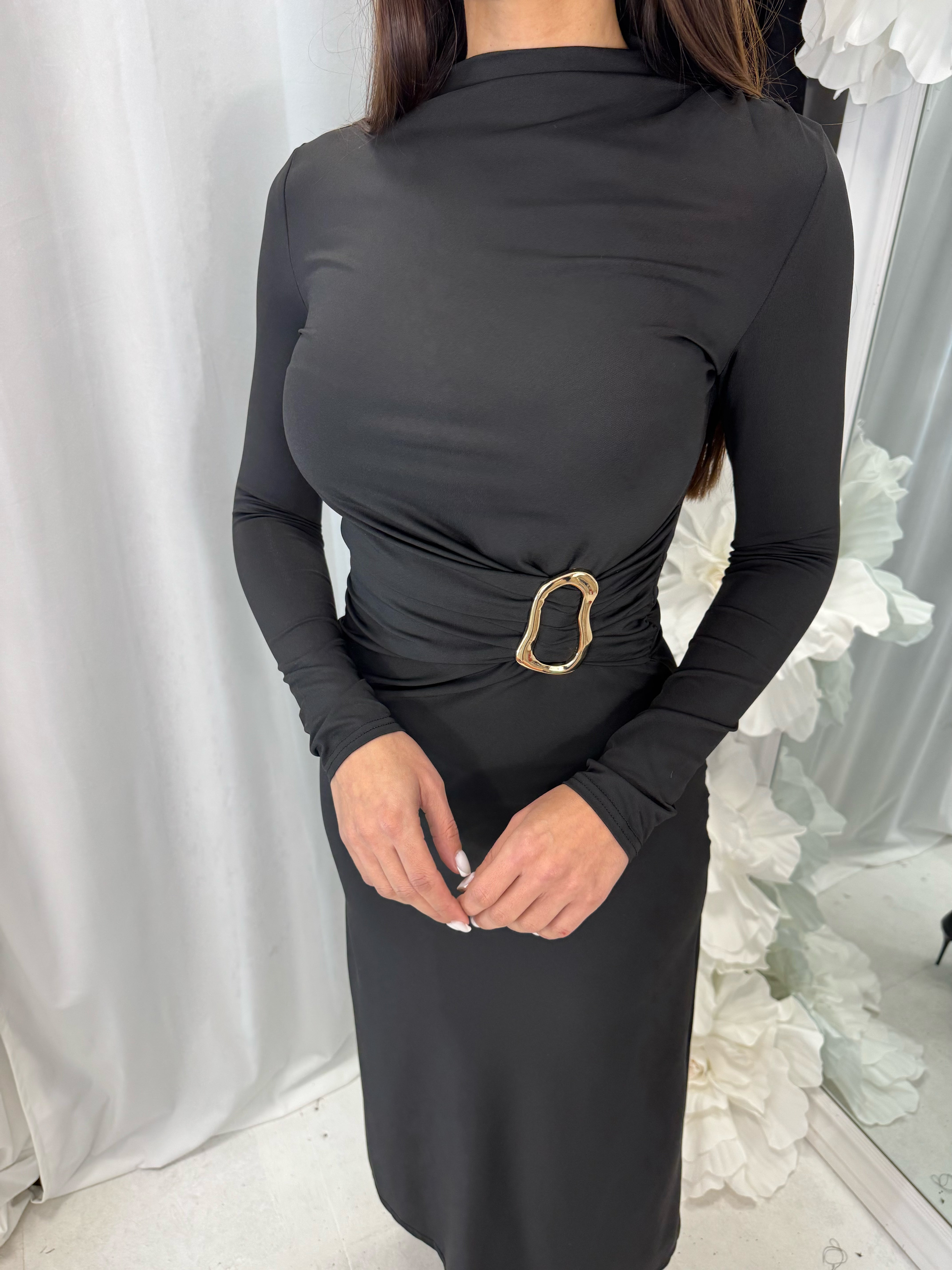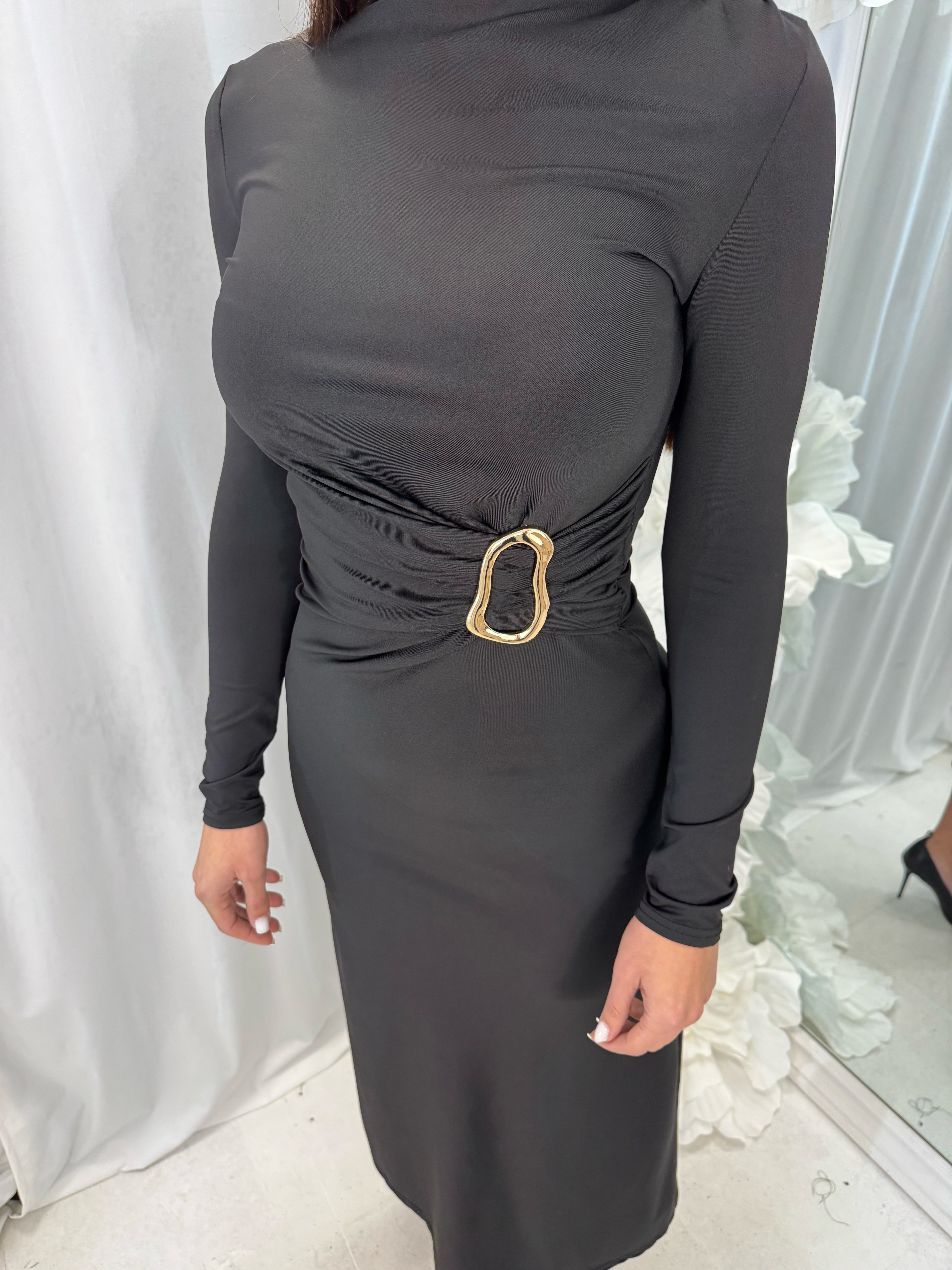 Лимитиран модел рокля от уникална материя. Роклята се предлага в размери - S/M и M/L.
