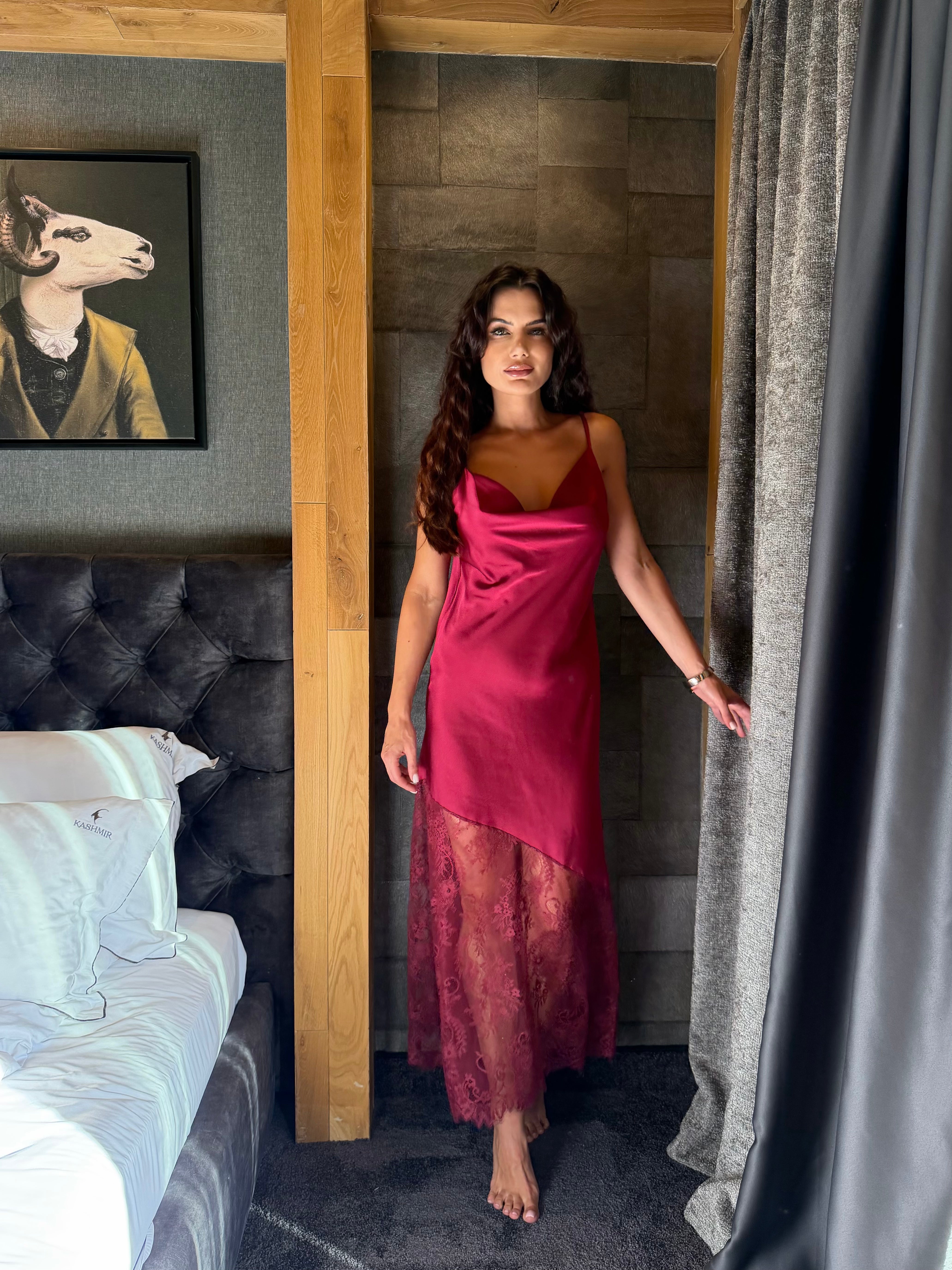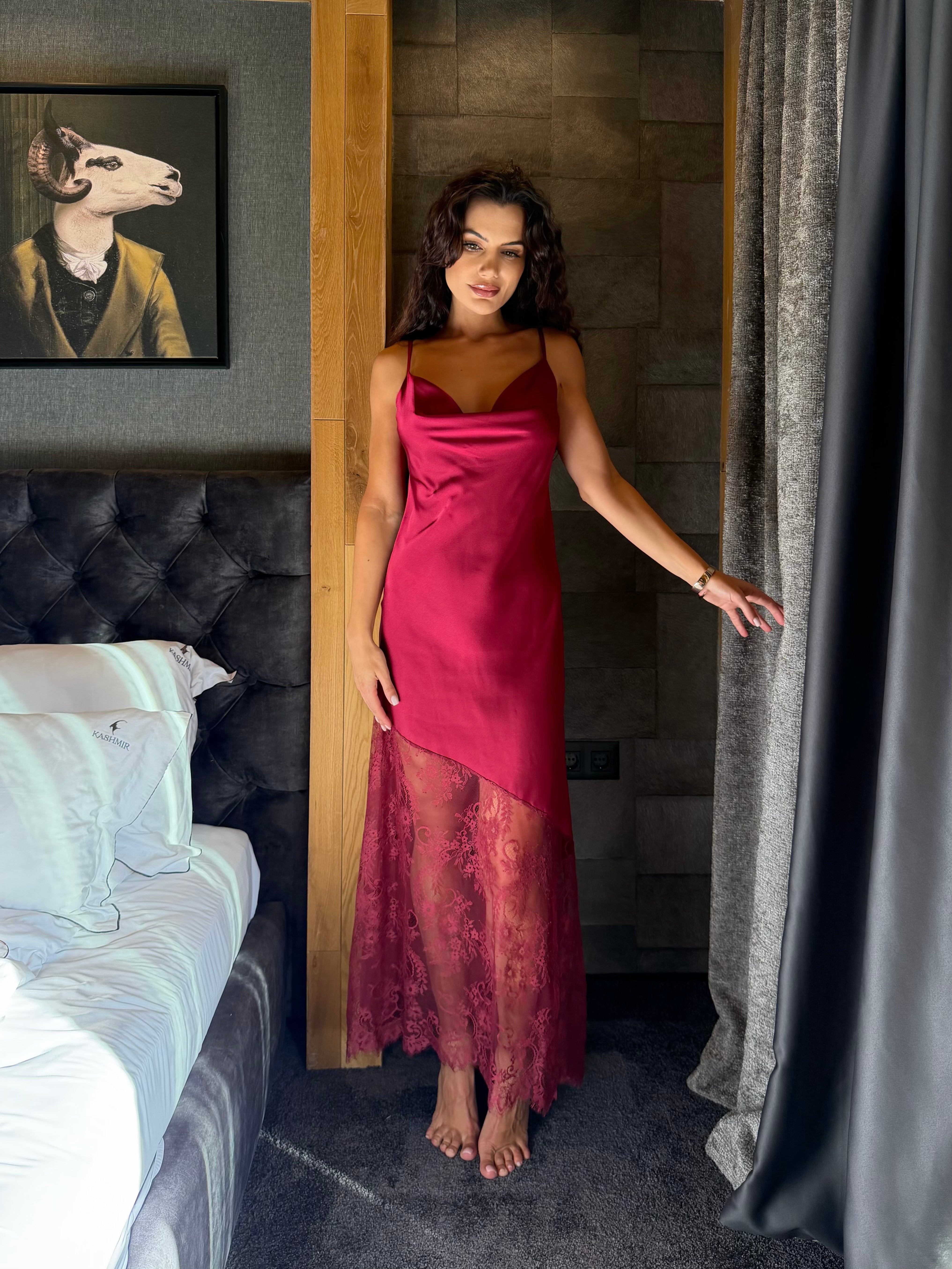 THE VIRAL DRESS – сатенена рокля с дантела и гръцко деколте