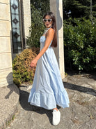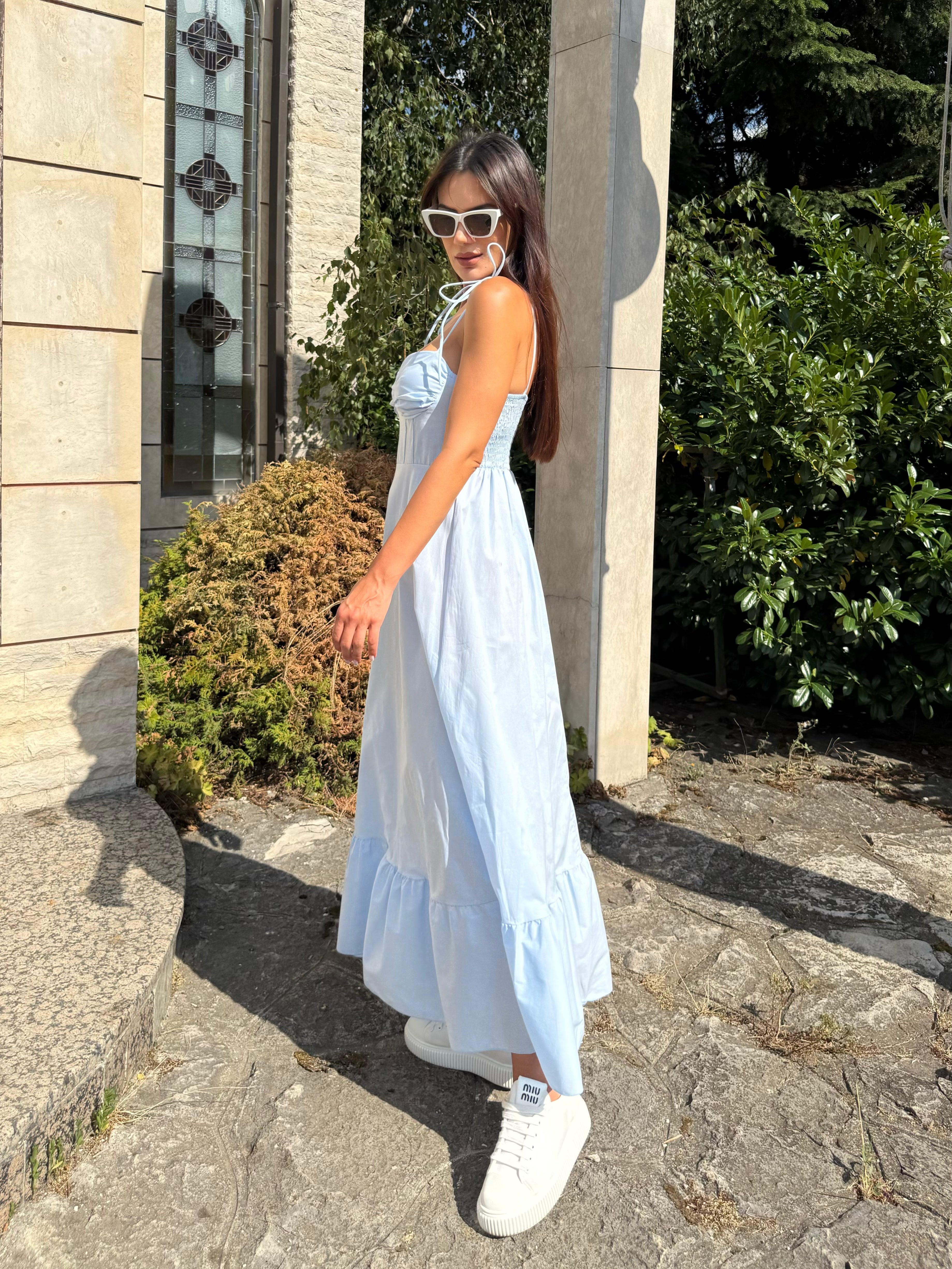 Рокля “Sara” е стилно и удобно решение за топлите дни. Изработена от 100% памук, тя осигурява лекота и комфорт през целия ден. Със свободна кройка, фино набрана долна част и тънки презрамки, този модел е подходящ както за разходки в града, така и за ваканции край морето..