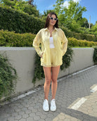 SHORTS : waist circumference - 68 cm (stretches to 82 cm), front length - 36 cm, back length - 38 cm.