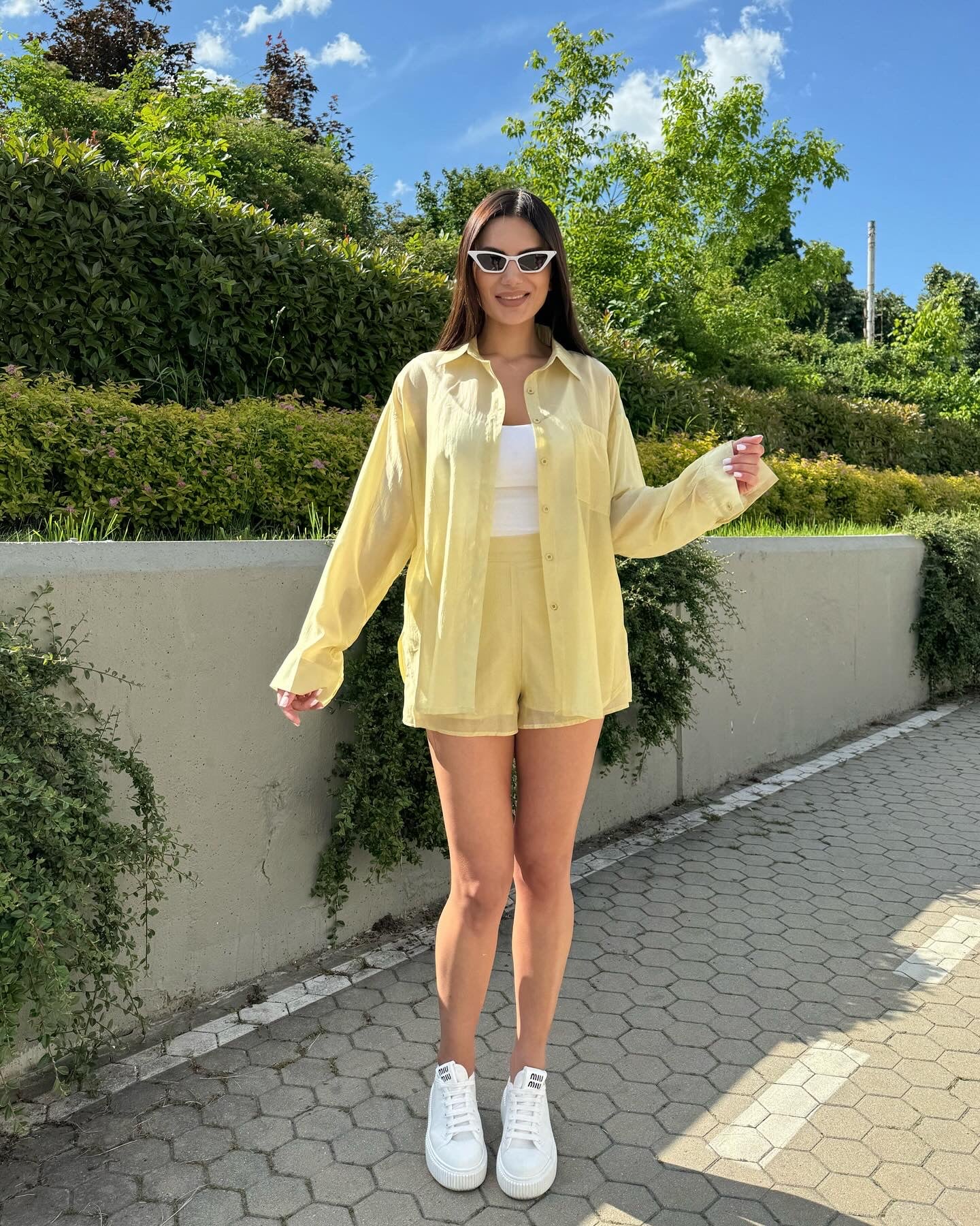SHORTS: waist circumference - 66 cm (stretches to 80 cm), front length - 35 cm, back length - 37 cm.