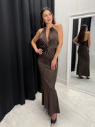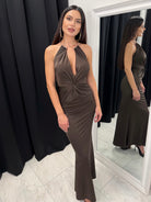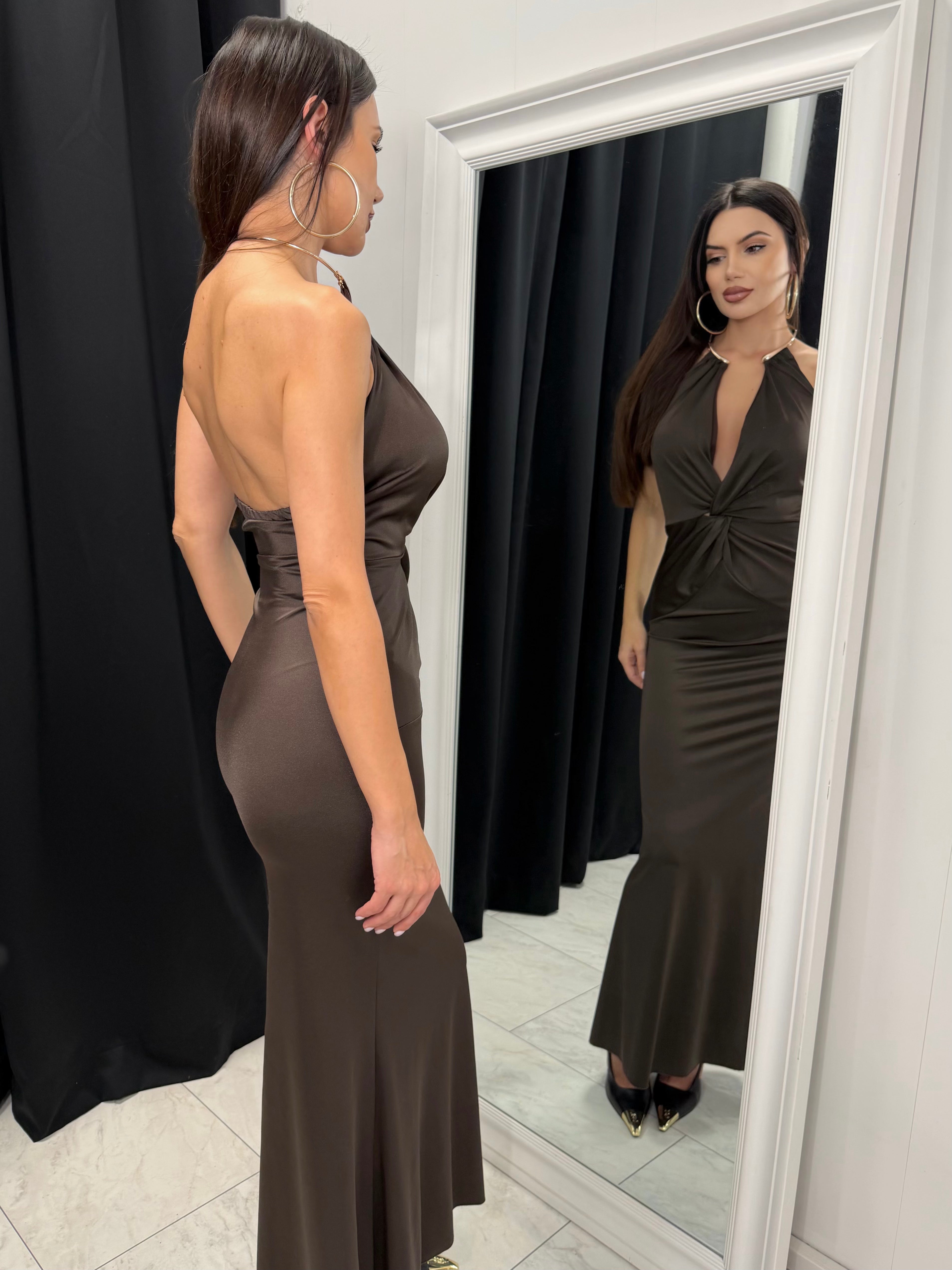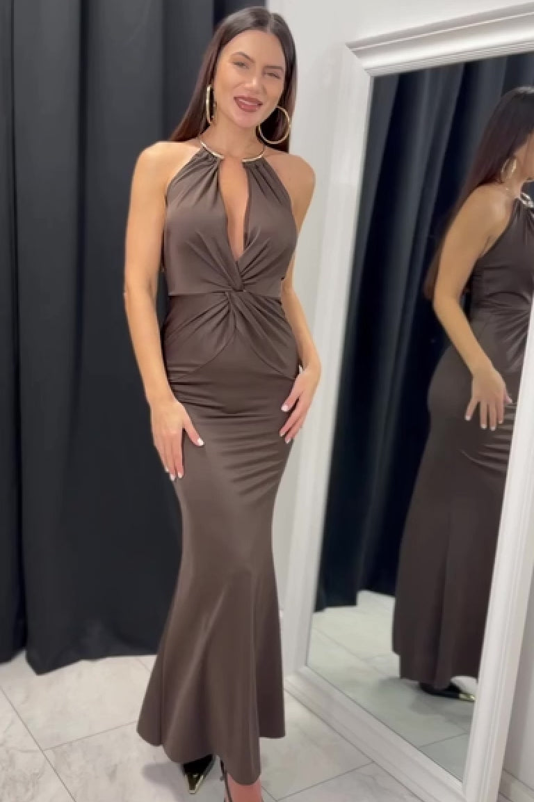 The gold detail at the waist adds a luxurious look and accentuates the silhouette. An ideal choice for special occasions, evening events or stylish daytime outings.