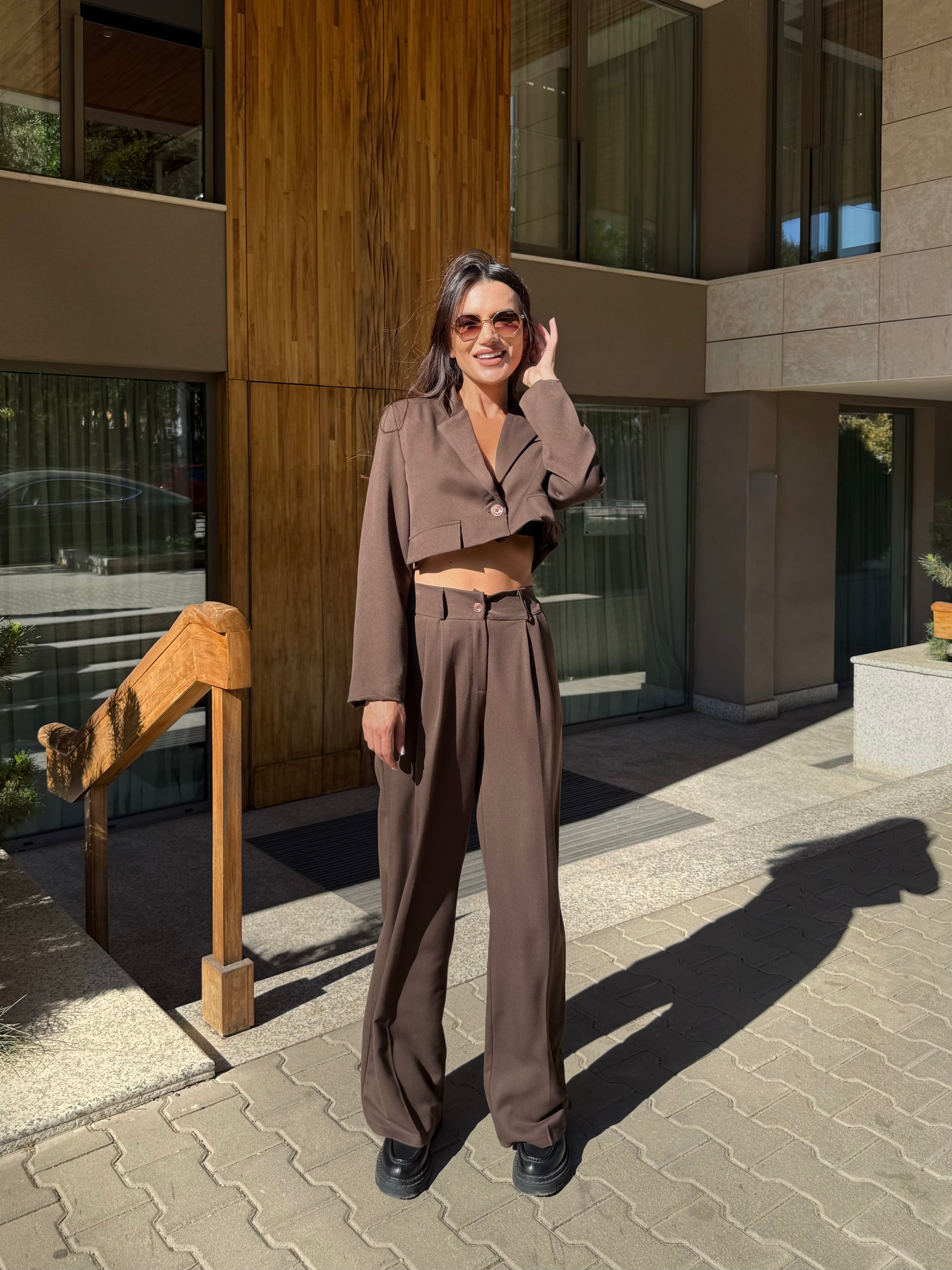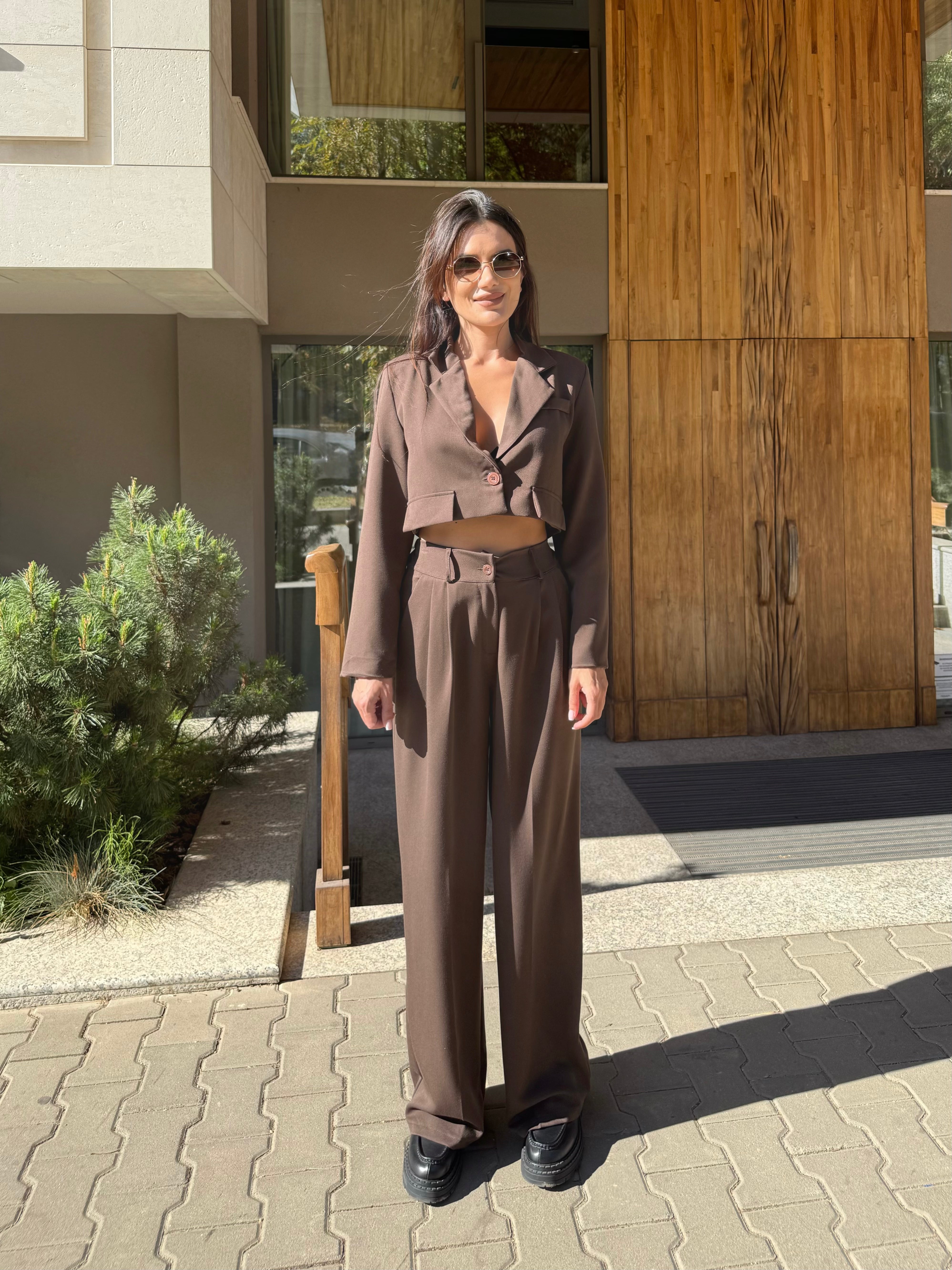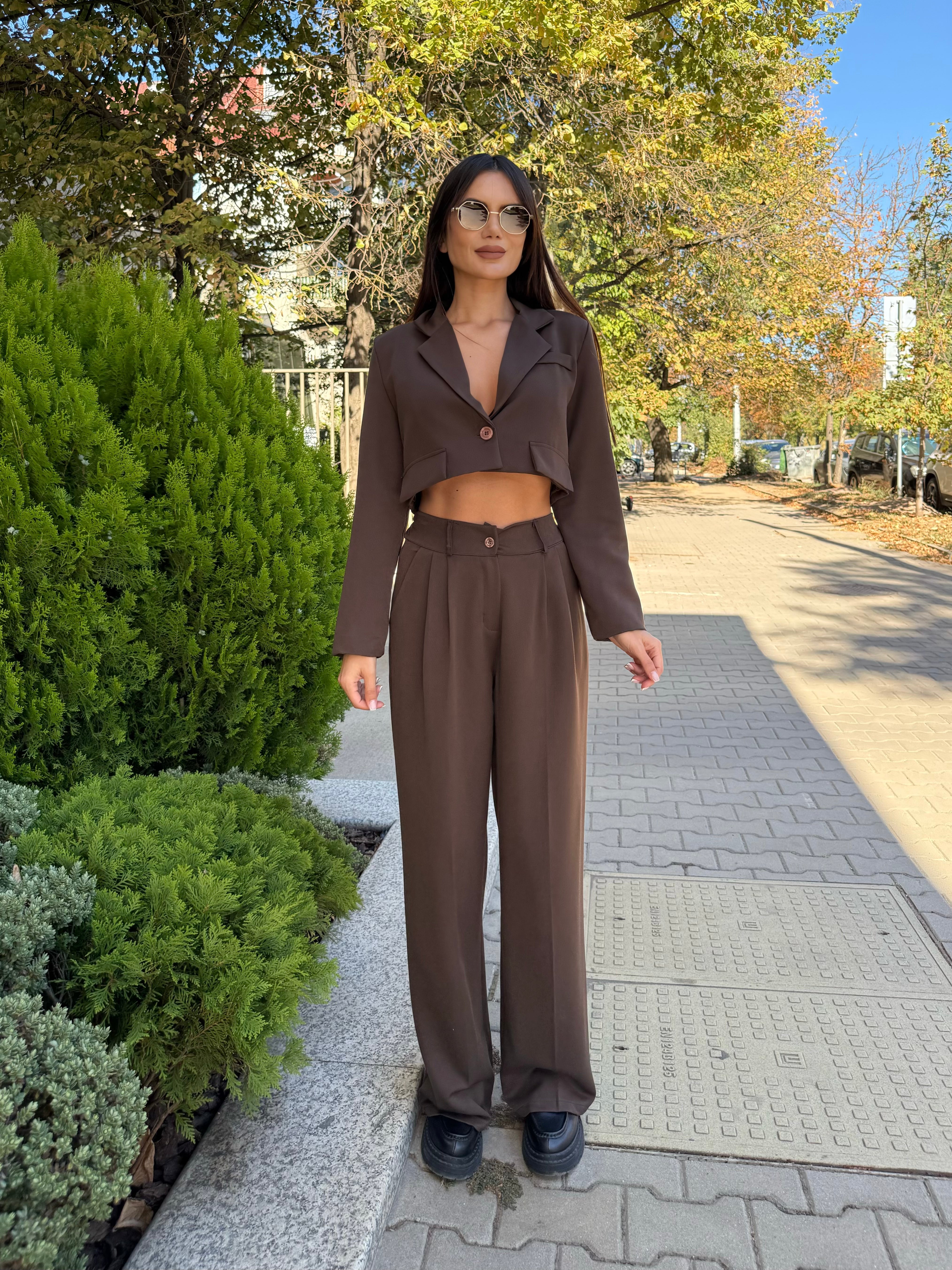 City Crop Suit Grey е модерна интерпретация на класическия костюм – стилен комплект, който включва късо сако и свободен панталон с висока талия. Съчетава минимализъм и градска елегантност, превръщайки се в перфектен избор за жени, които ценят комфорта и модерната визия.
