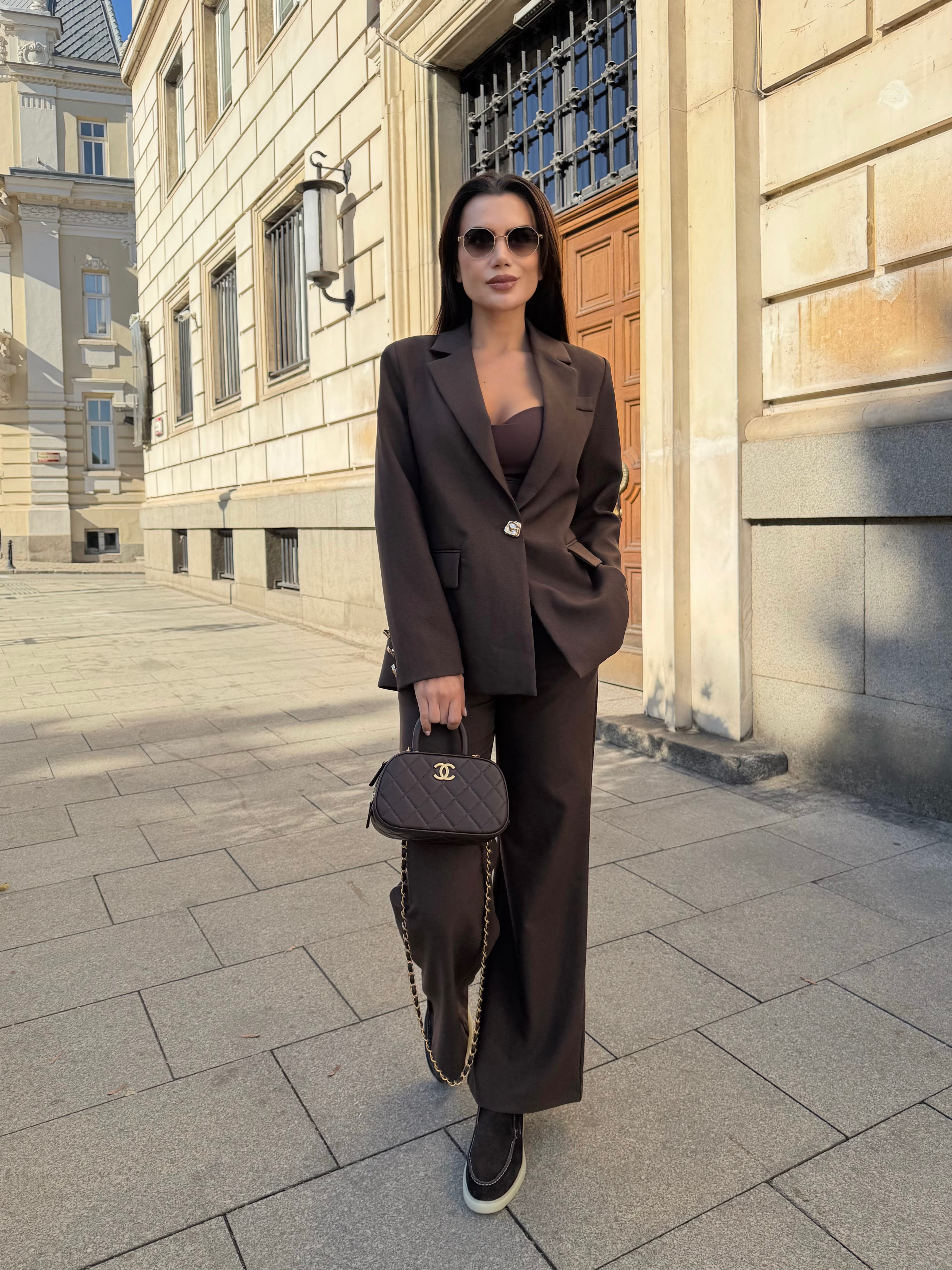 Луксозен костюм от две части – сако и панталон, създаден за съвременната жена с усет към детайла.