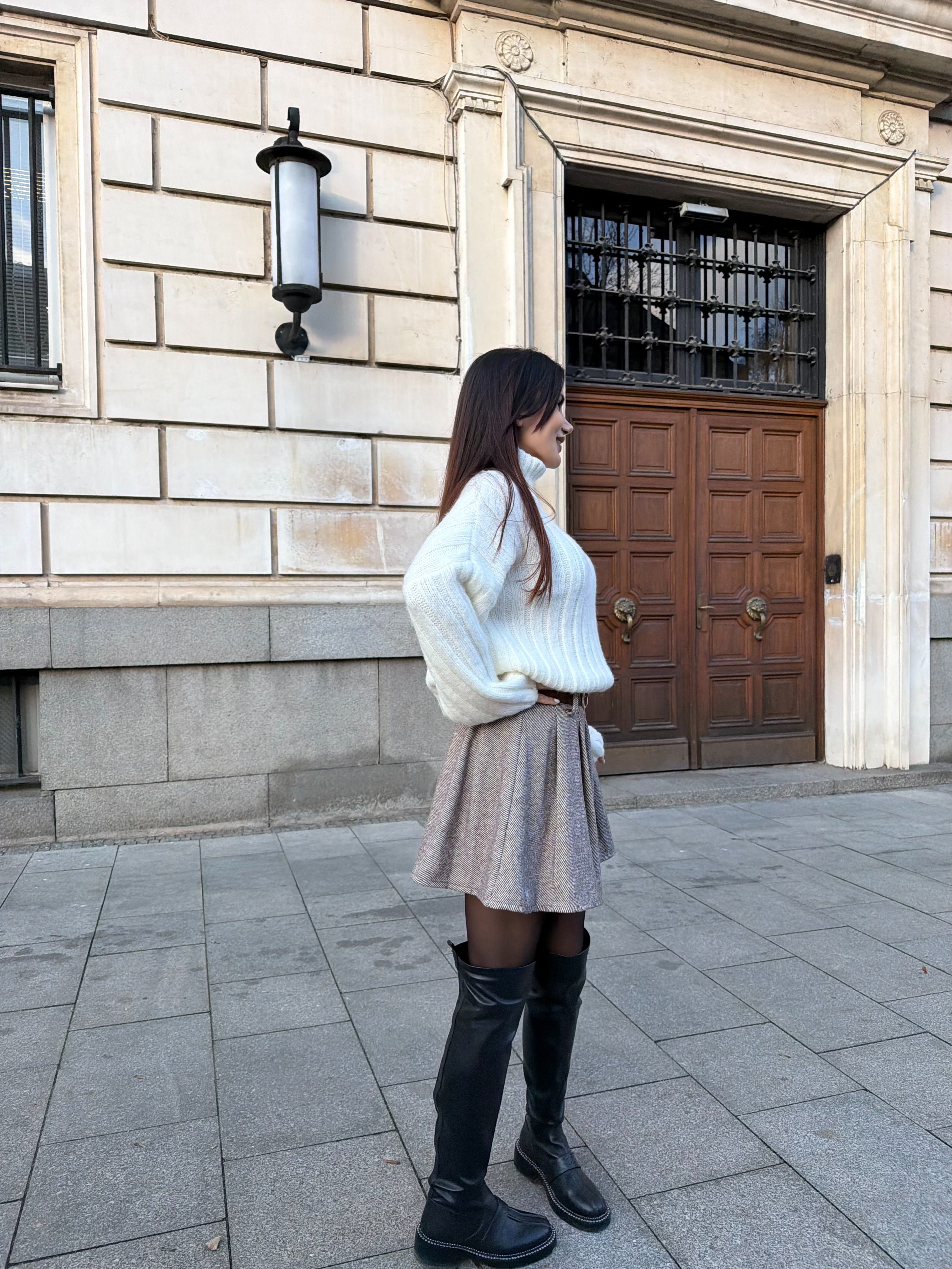 Stylish and sexy PLEATED skirt with high waist. Inside - shorts . Fastens with a zipper on the side.