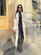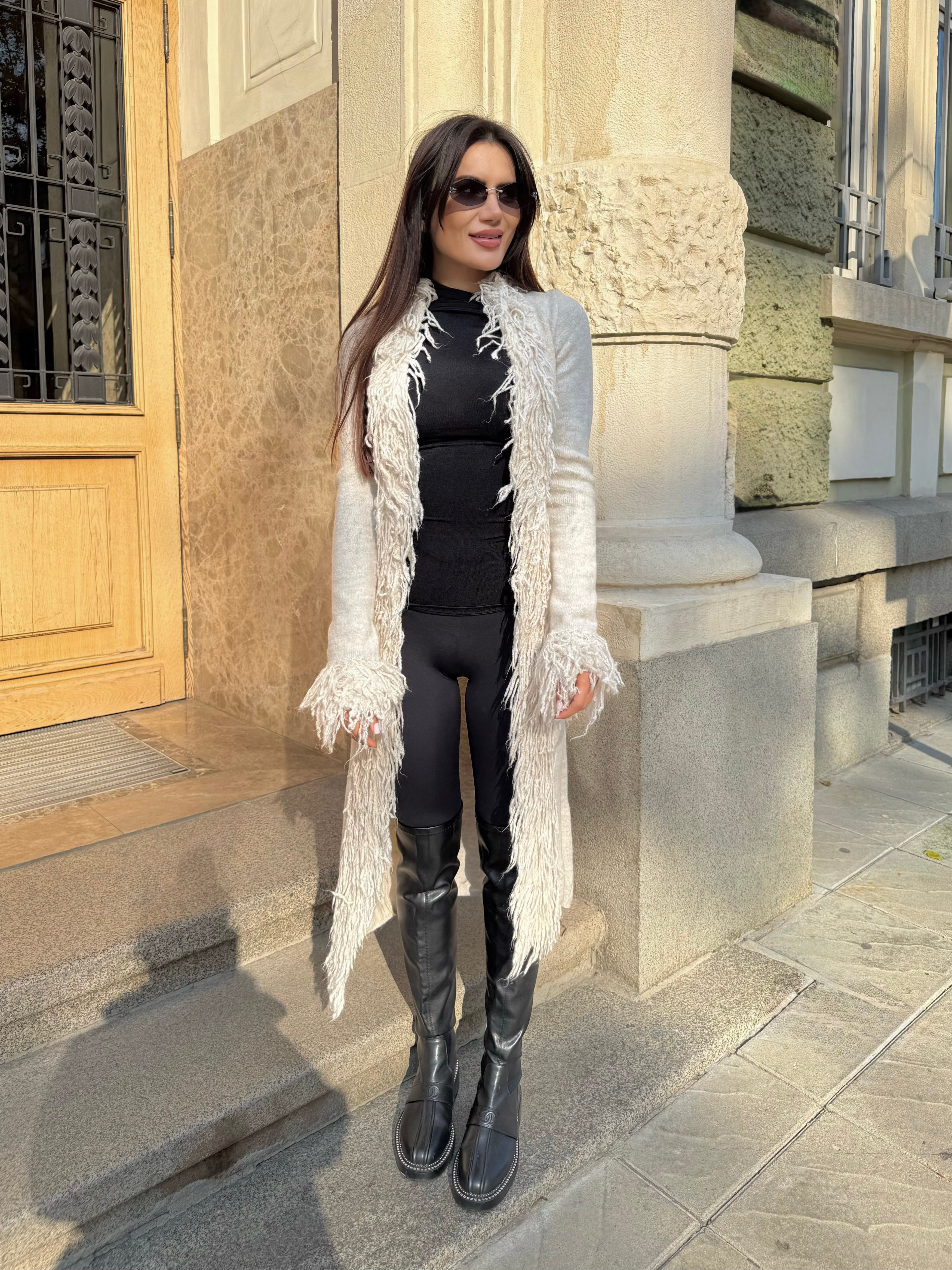 VEST made of fine elastic dense knit with a loose cut. The model can be worn as a jacket or coat.
