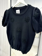 CHIC FLO BLOUSE with short sleeves, round neckline made of fine machine knit.