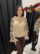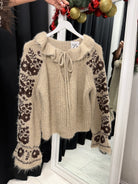 RIBBON BLOUSE with short sleeves and a high collar, round neckline made of fine machine knit with spectacular sewn-in ribbons on the front.
