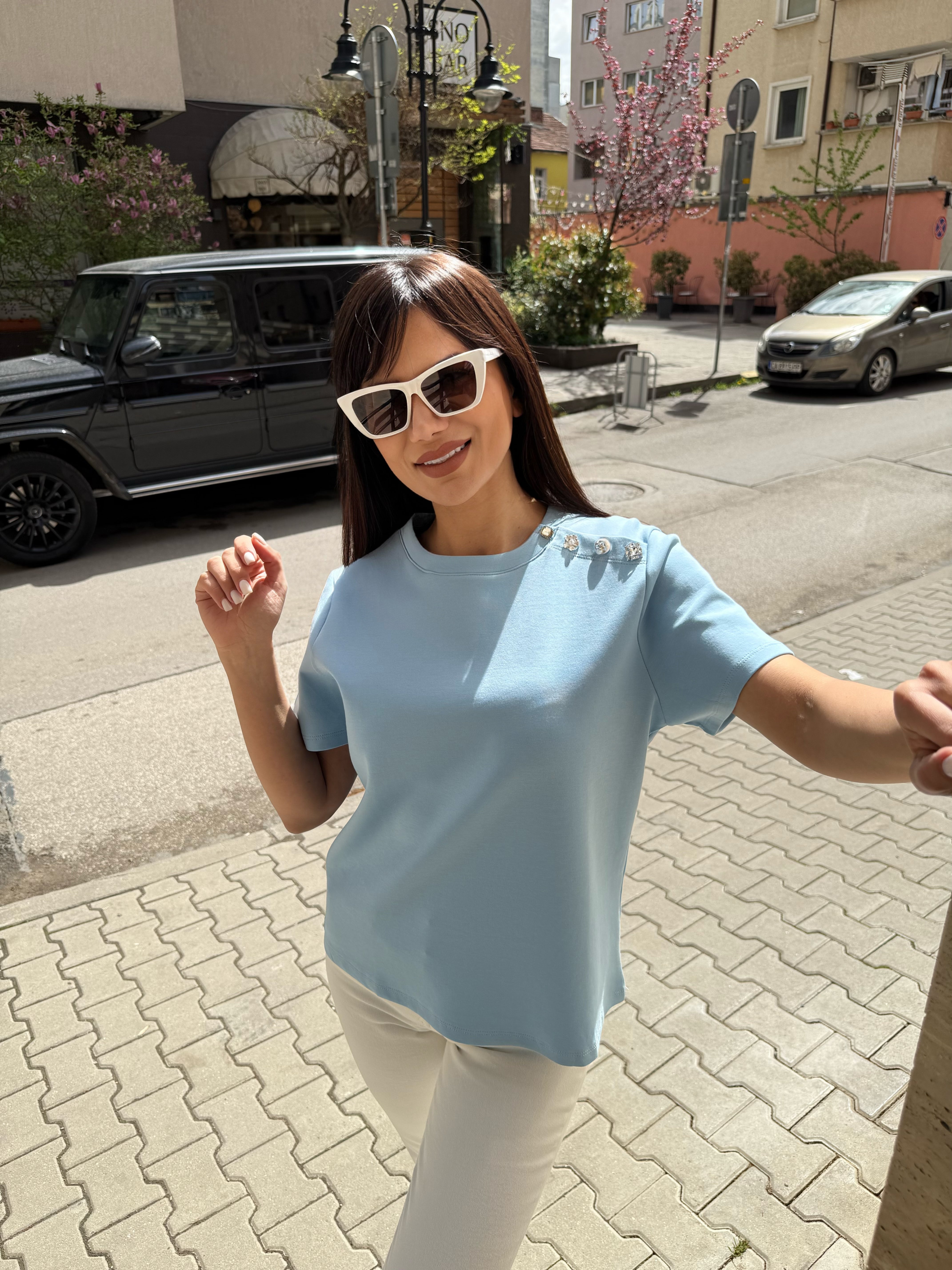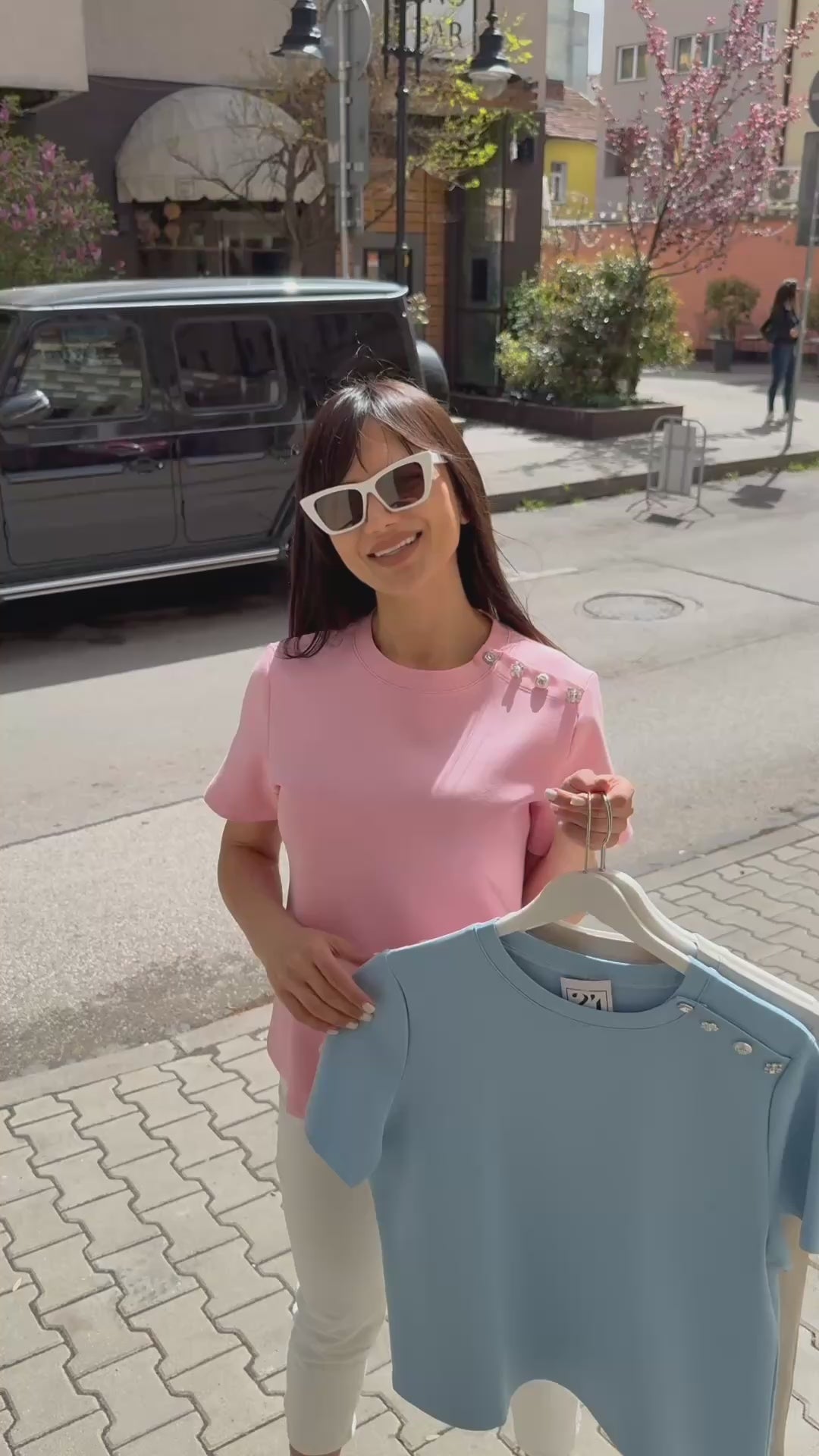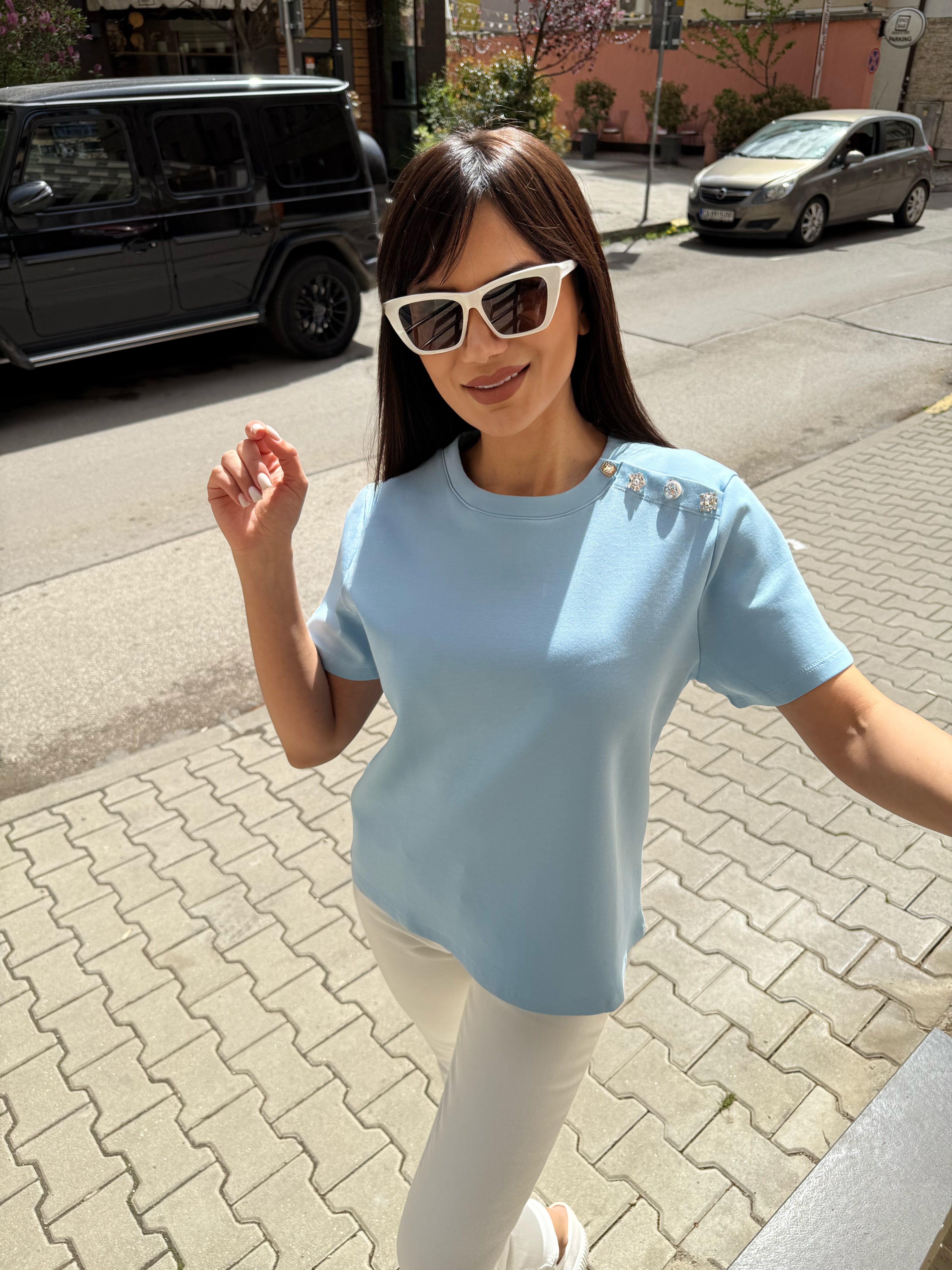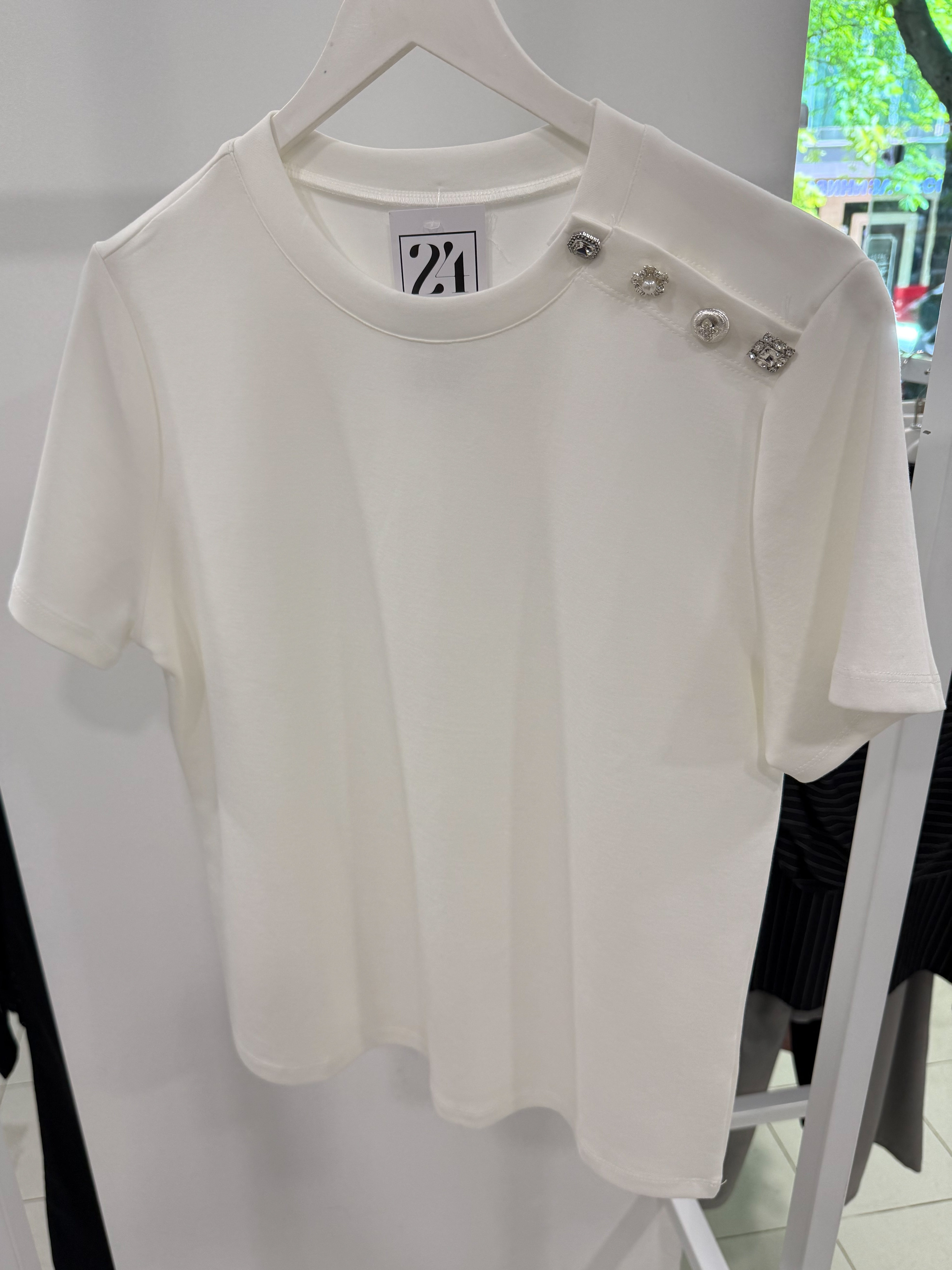 BIJOU T-SHIRT, unique fabric! A stylish accent are the jewel buttons on the round neckline.