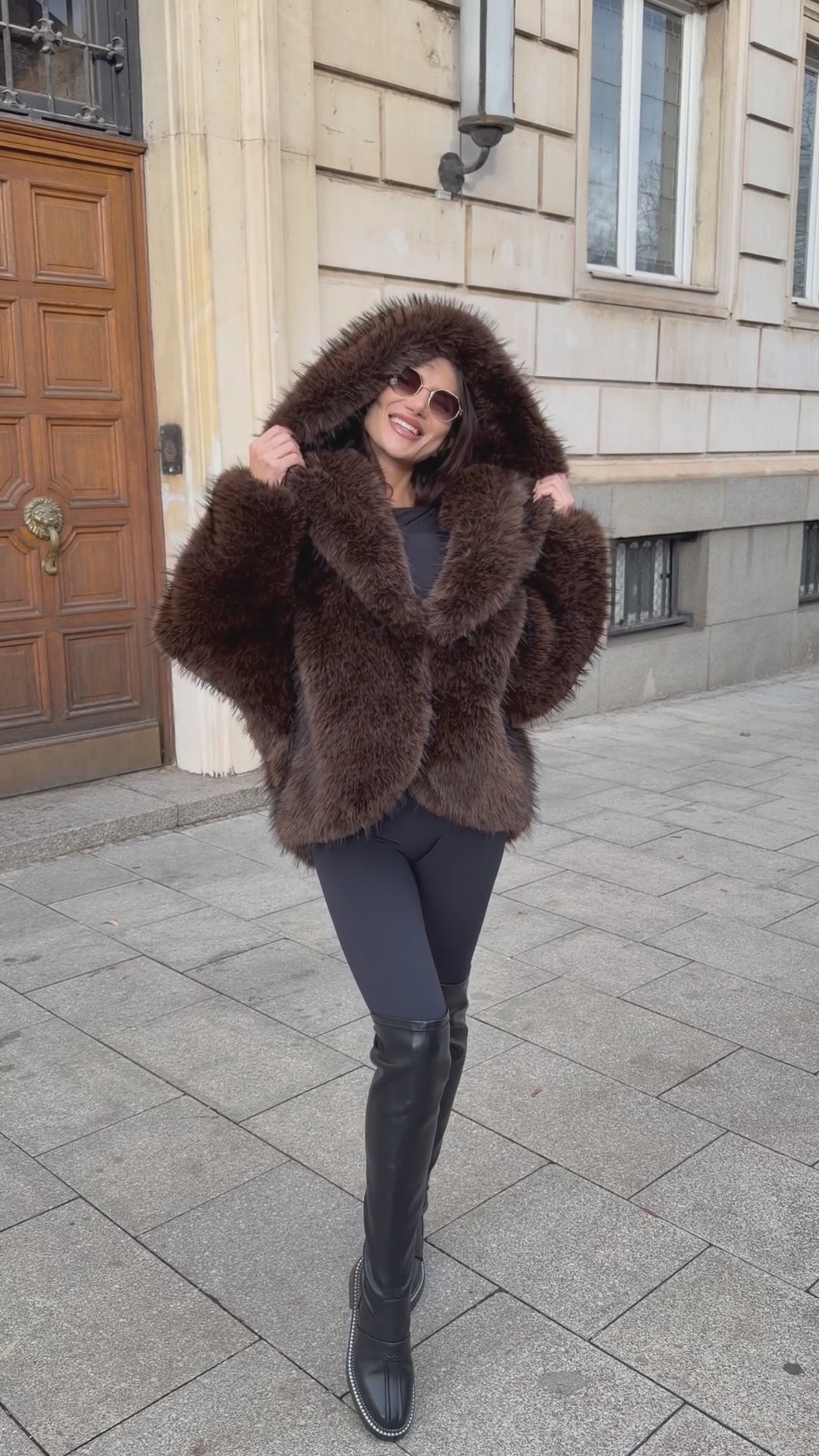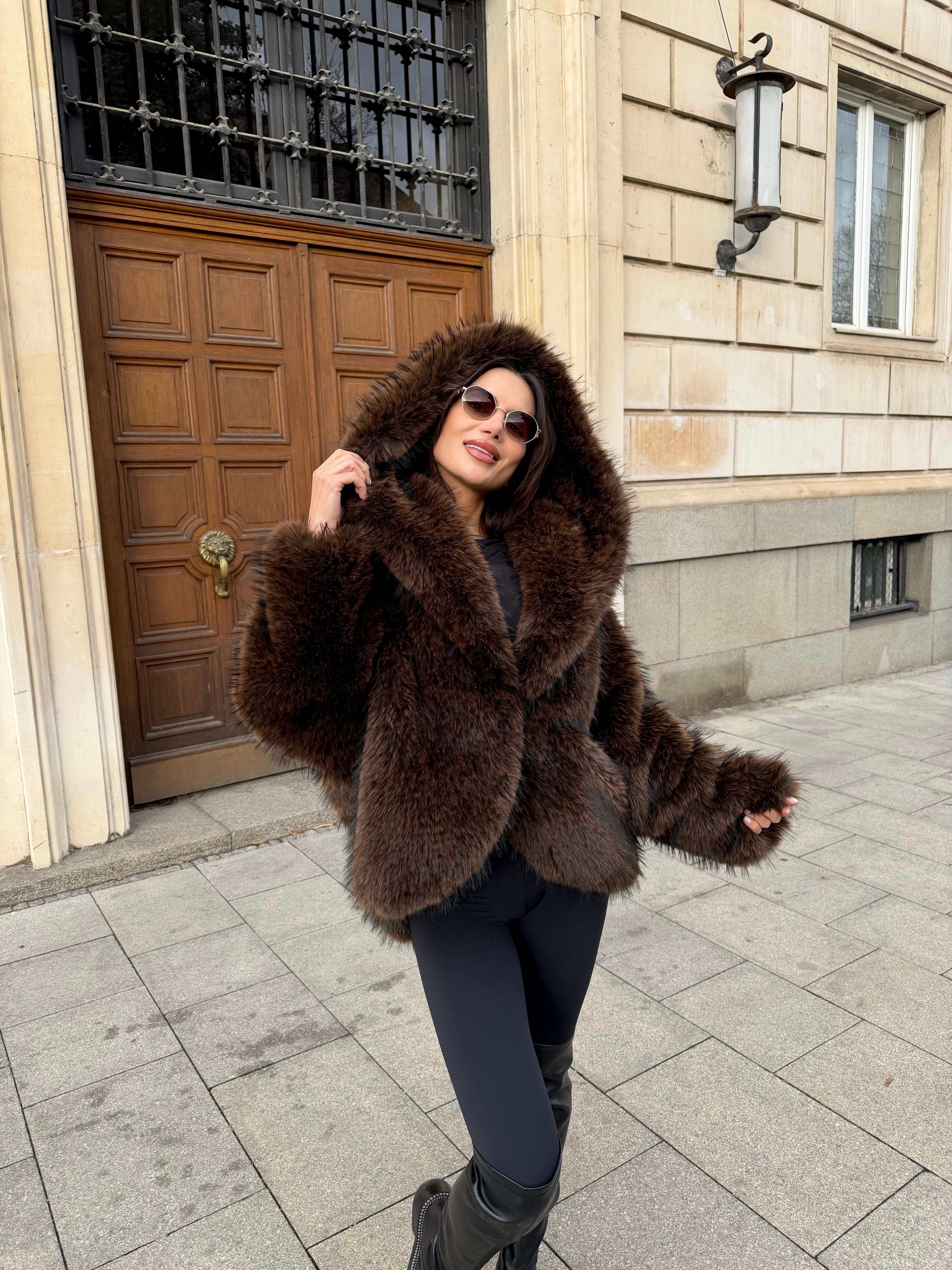 BROWN OVERSIZE FUR - късо палто с качулка