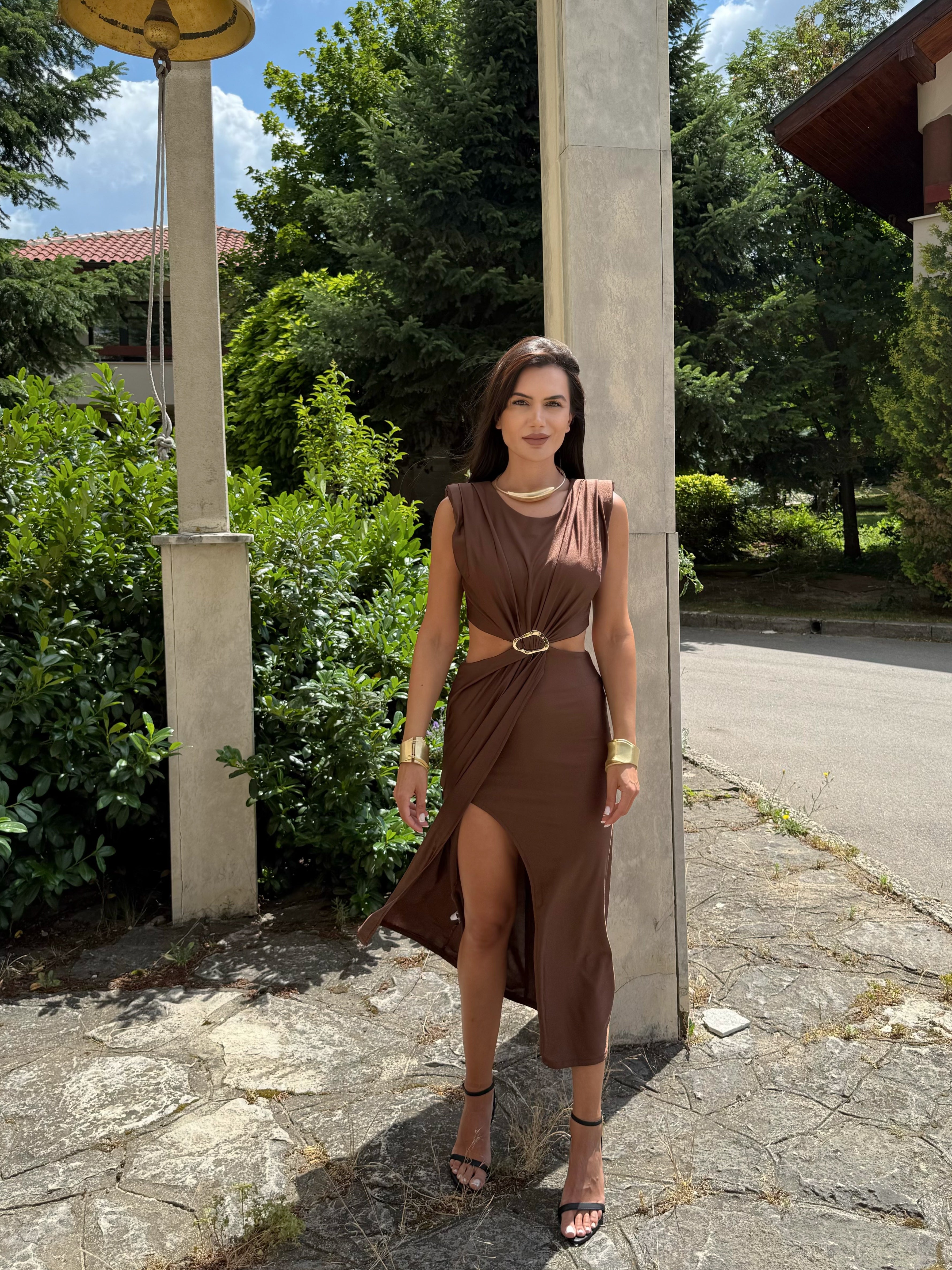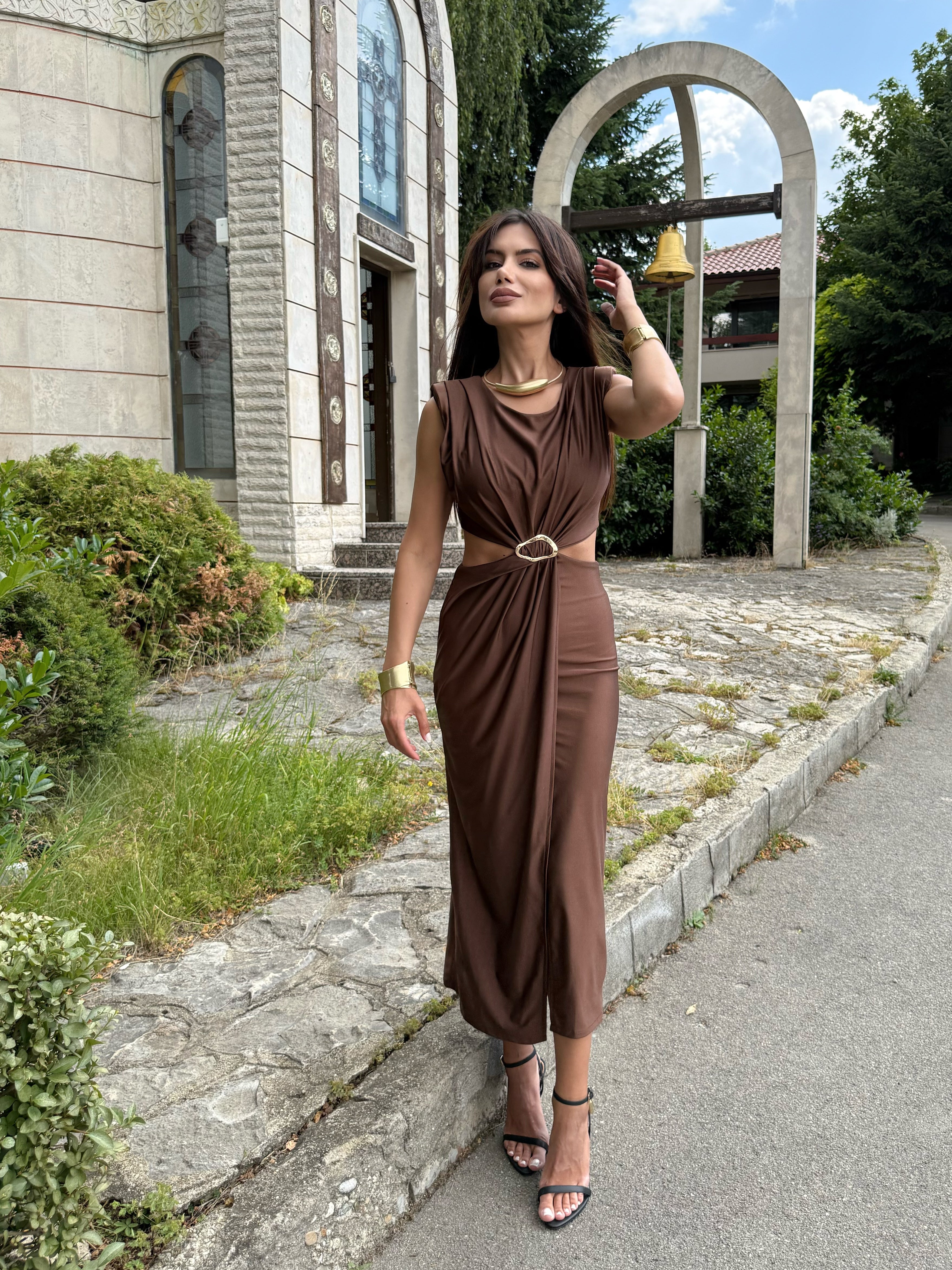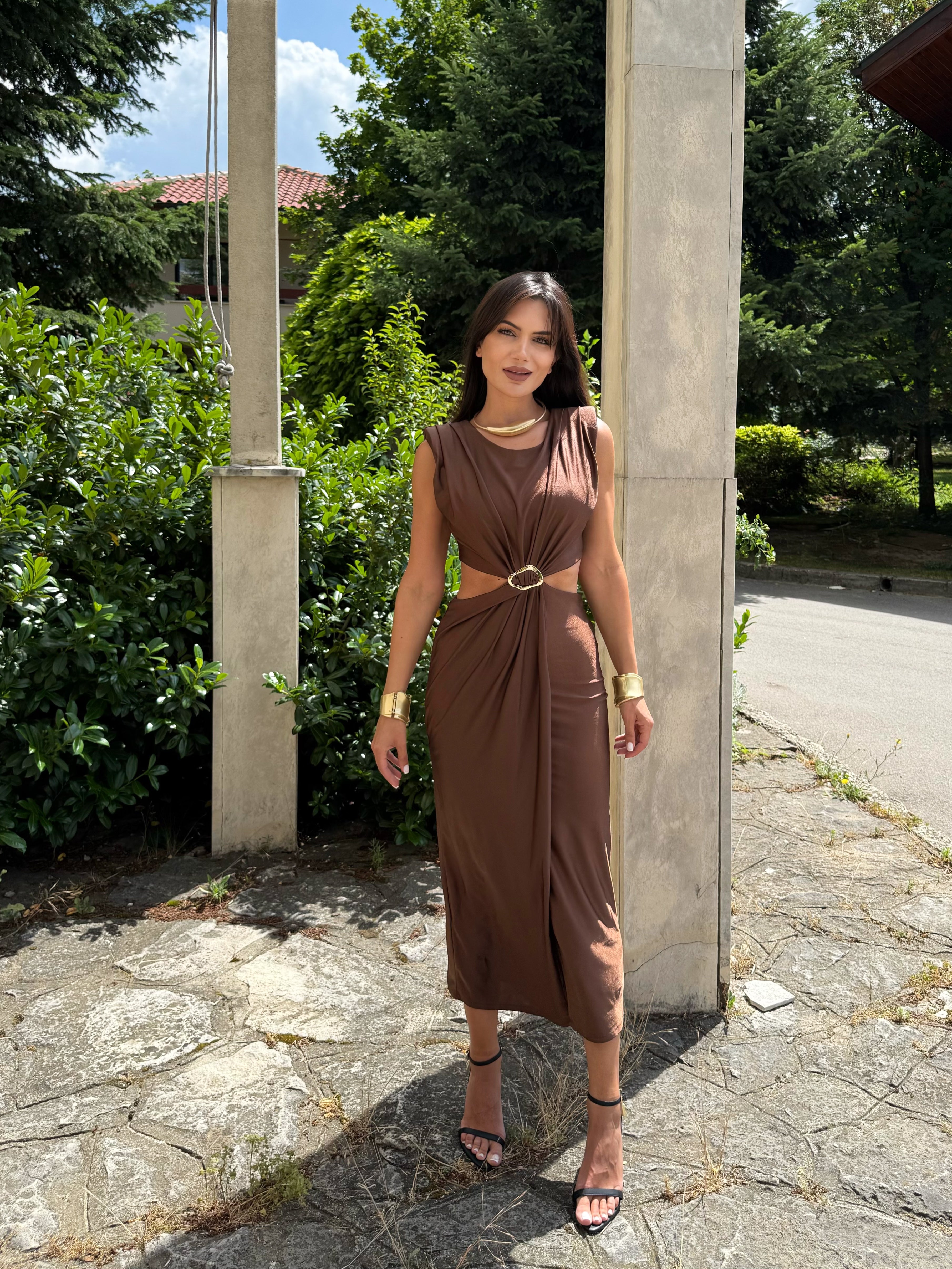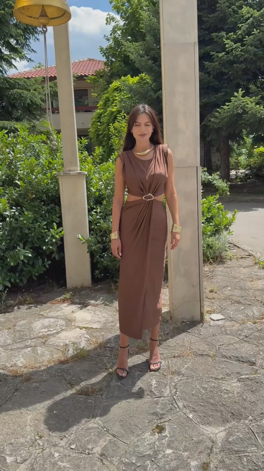 KIM GOLD dress is the perfect combination of elegance and minimalism. Made of fine, elastic fabric that emphasizes femininity and creates a slight draping effect. The gold detail at the waist gives a luxurious look and accentuates the silhouette. An ideal choice for special occasions, evening events or stylish daytime outings.