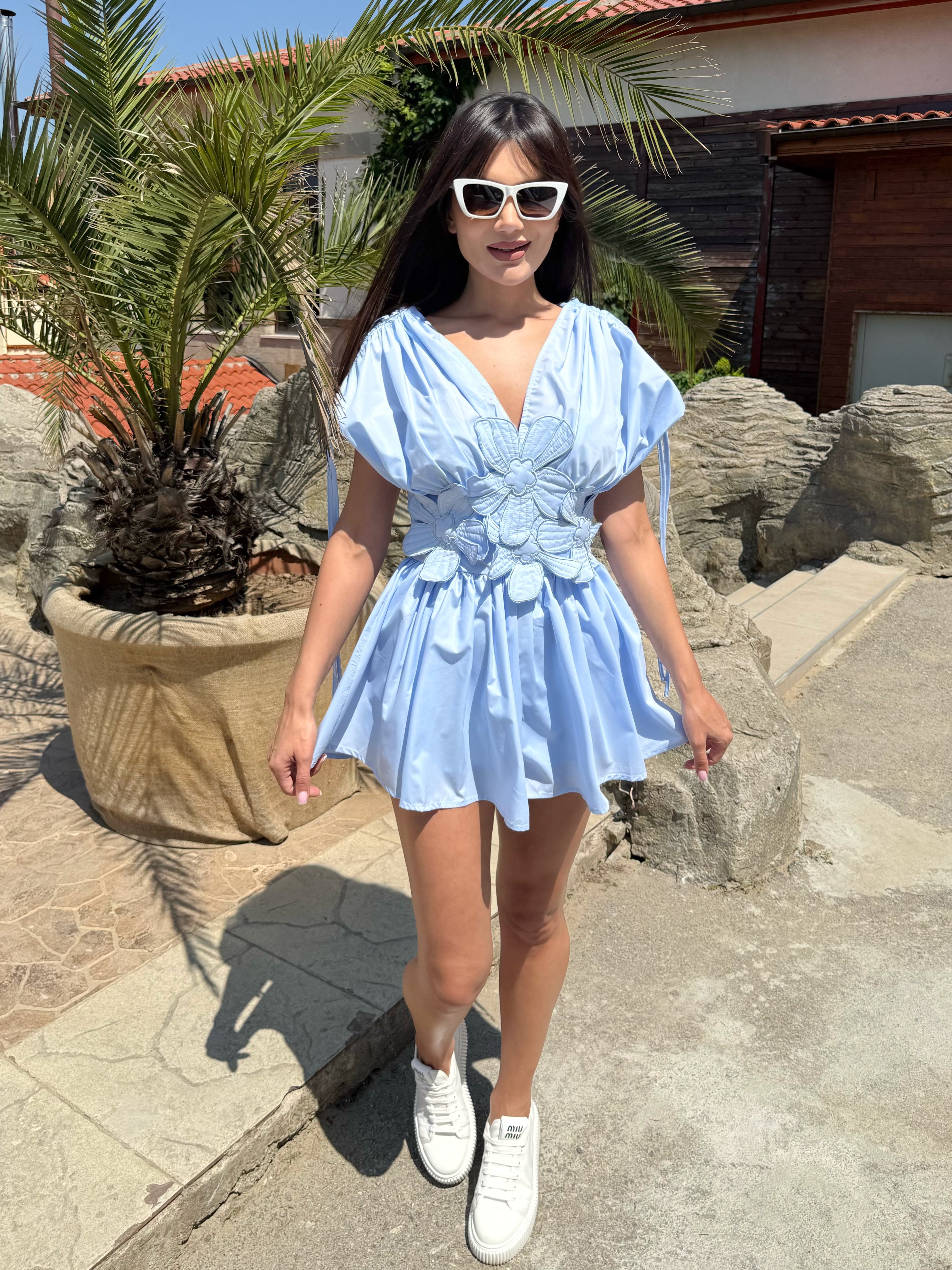 Give yourself a feeling of lightness and style with the Bloom jumpsuit - the perfect combination of comfort and elegance. Made of airy fabric, with a defined waist and unique 3D floral applications, this model is designed to grab attention. The loose cut of the shorts and the spectacular volume at the top make it ideal for summer walks, vacations and urban looks.