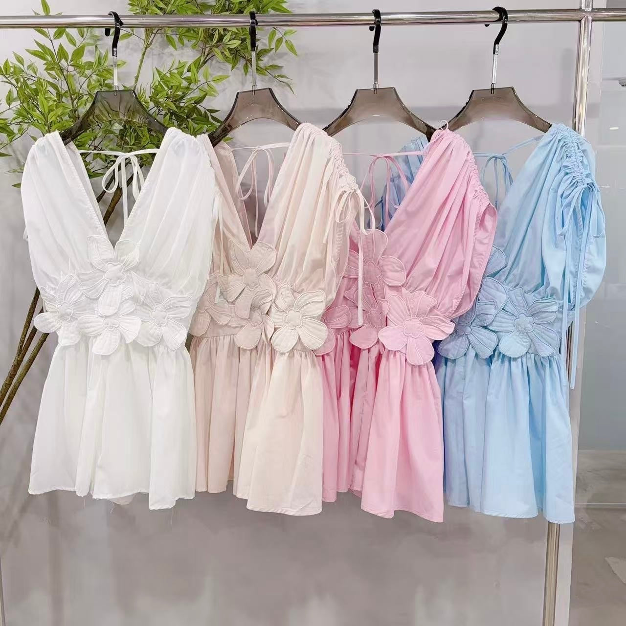 Accent: 3D flowers at the waist
