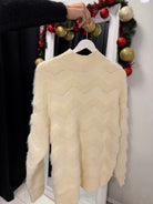 RIBBON BLOUSE with short sleeves and a high collar, round neckline made of fine machine knit with spectacular sewn-in ribbons on the front.