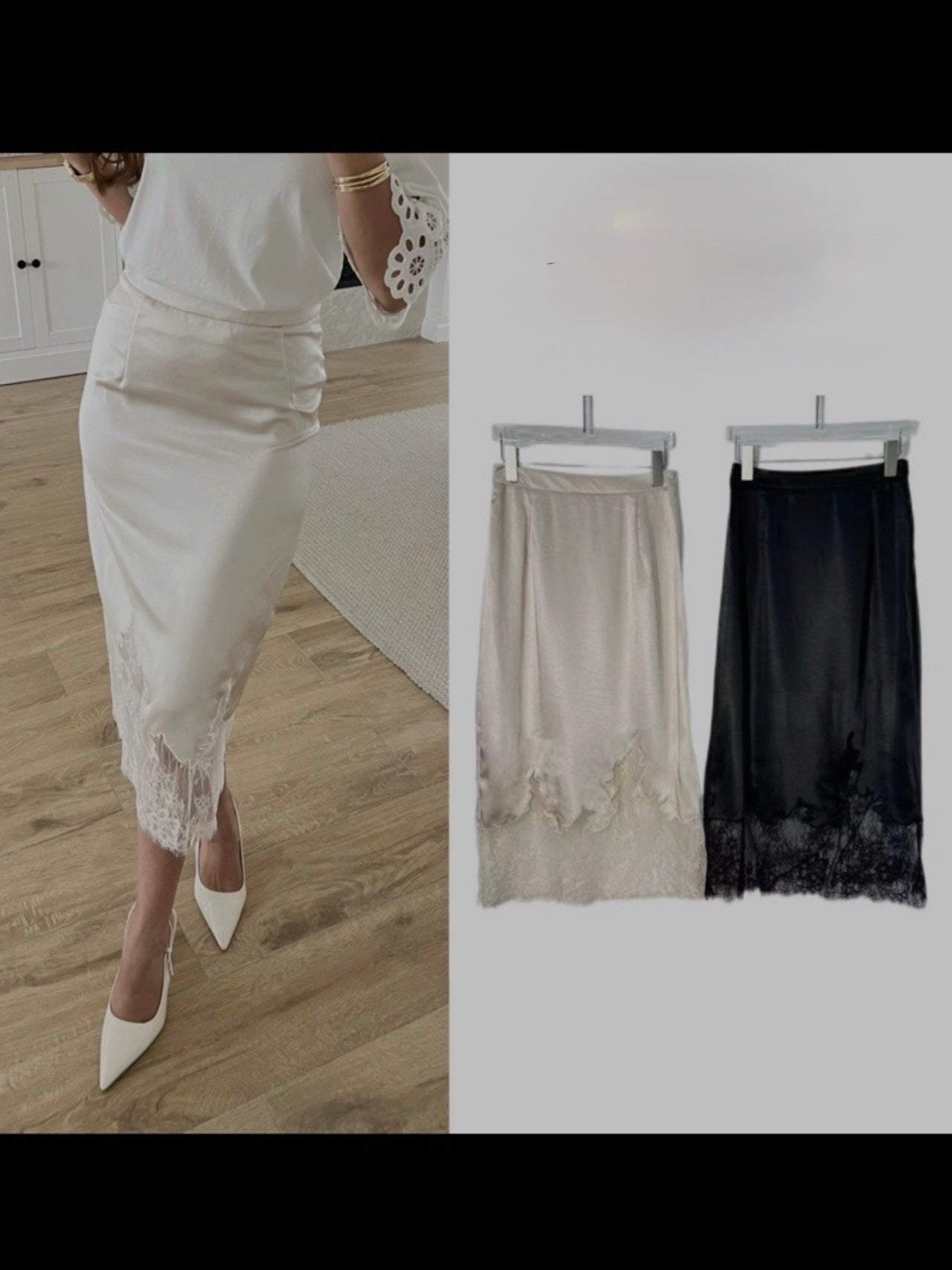 The “Lace Elegance” skirt is a combination of luxurious satin and exquisite lace – a classic with a modern twist. The model has a straight line and a delicate lace finish that emphasizes femininity and gives a feeling of lightness and style.