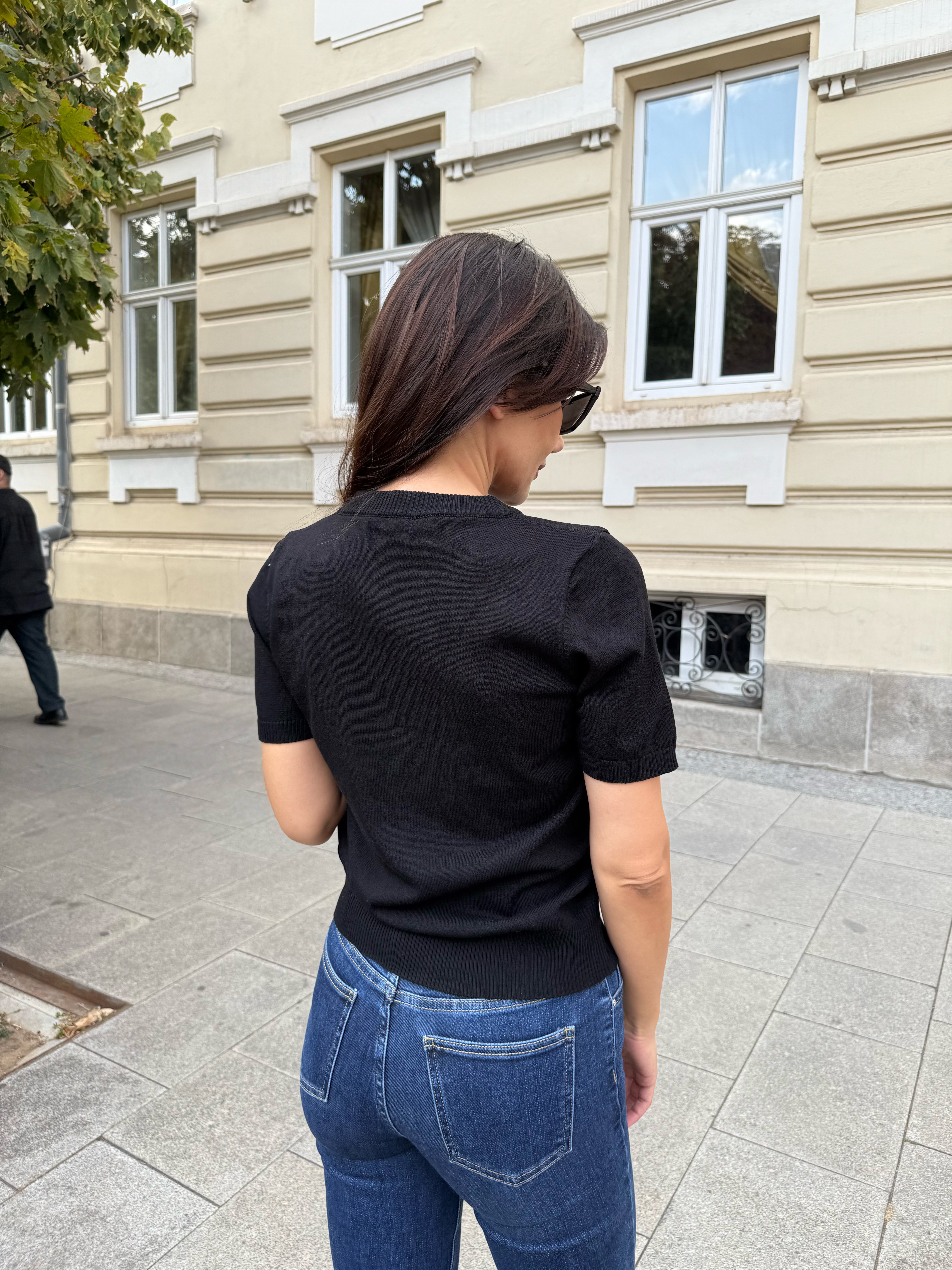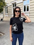CHIC BLOUSE with short sleeves, round neckline made of fine machine knit.