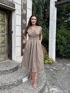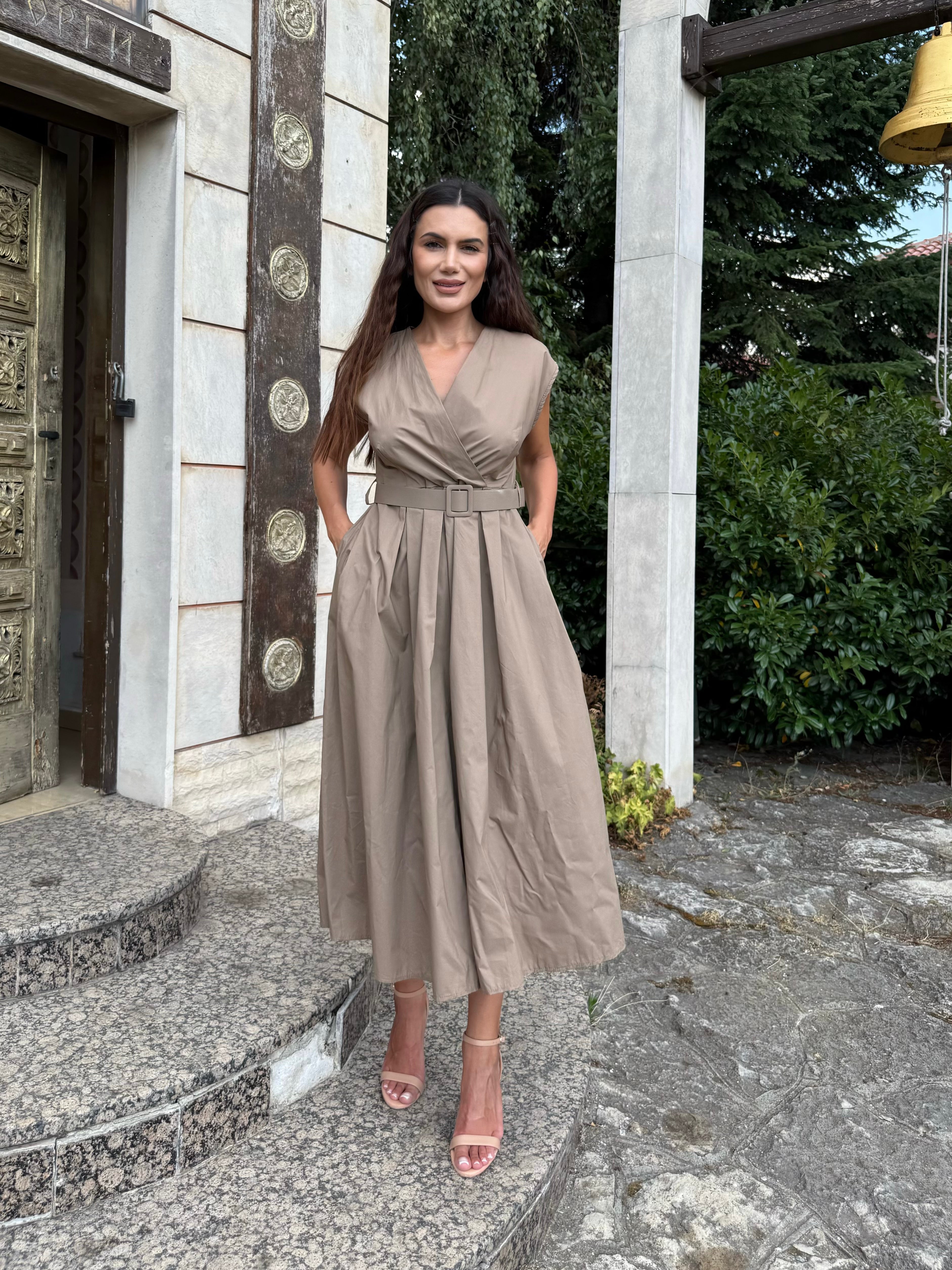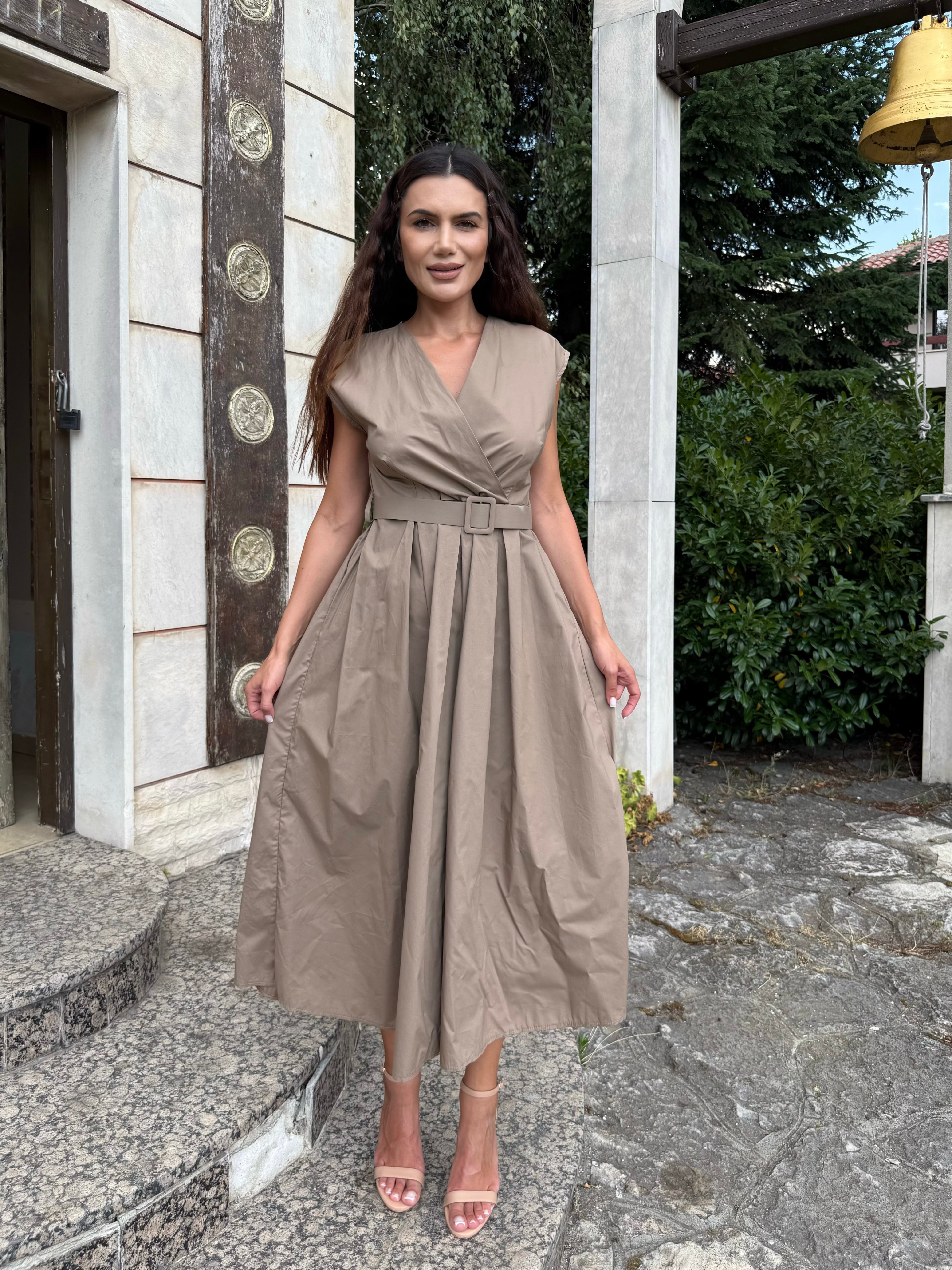 Elegant and simple, the BELLA dress is designed for women who love comfort and style in one. Made of 100% cotton, this dress is perfect for both summer events and everyday elegance. With a V-neck, a belt at the waist and a length below the knee, BELLA emphasizes the figure and creates a sophisticated silhouette. It goes perfectly with heels or sandals for a more casual style.