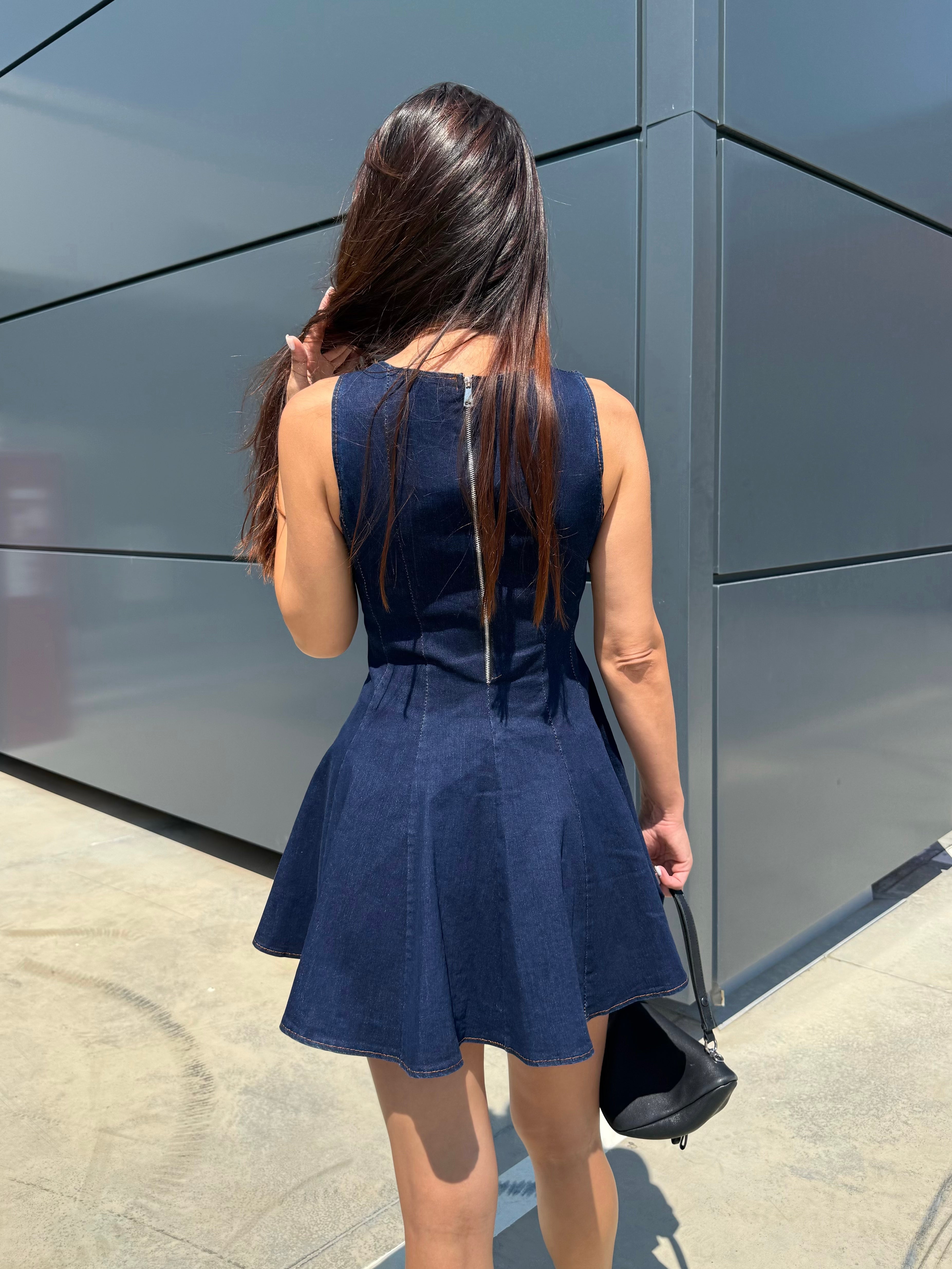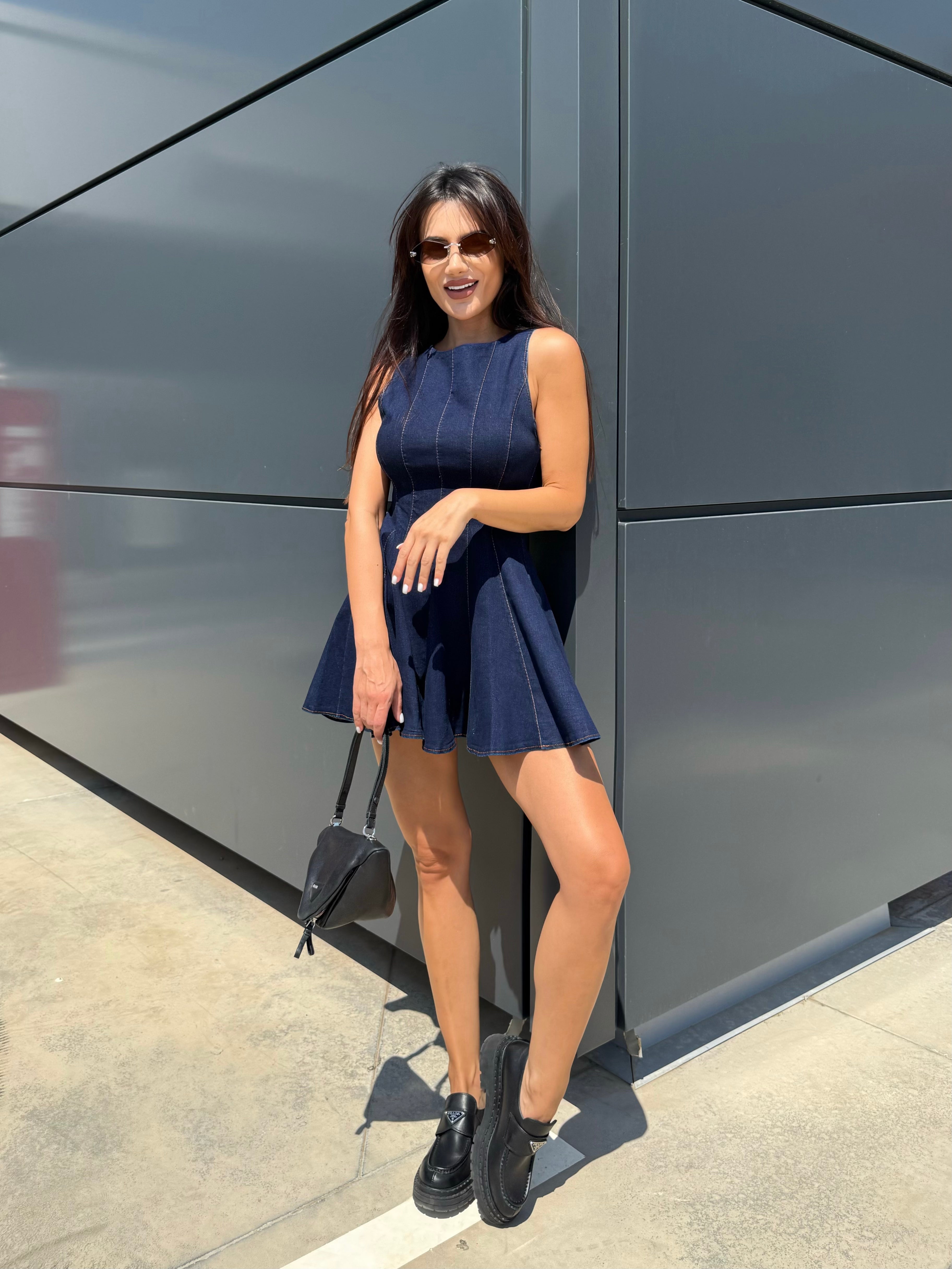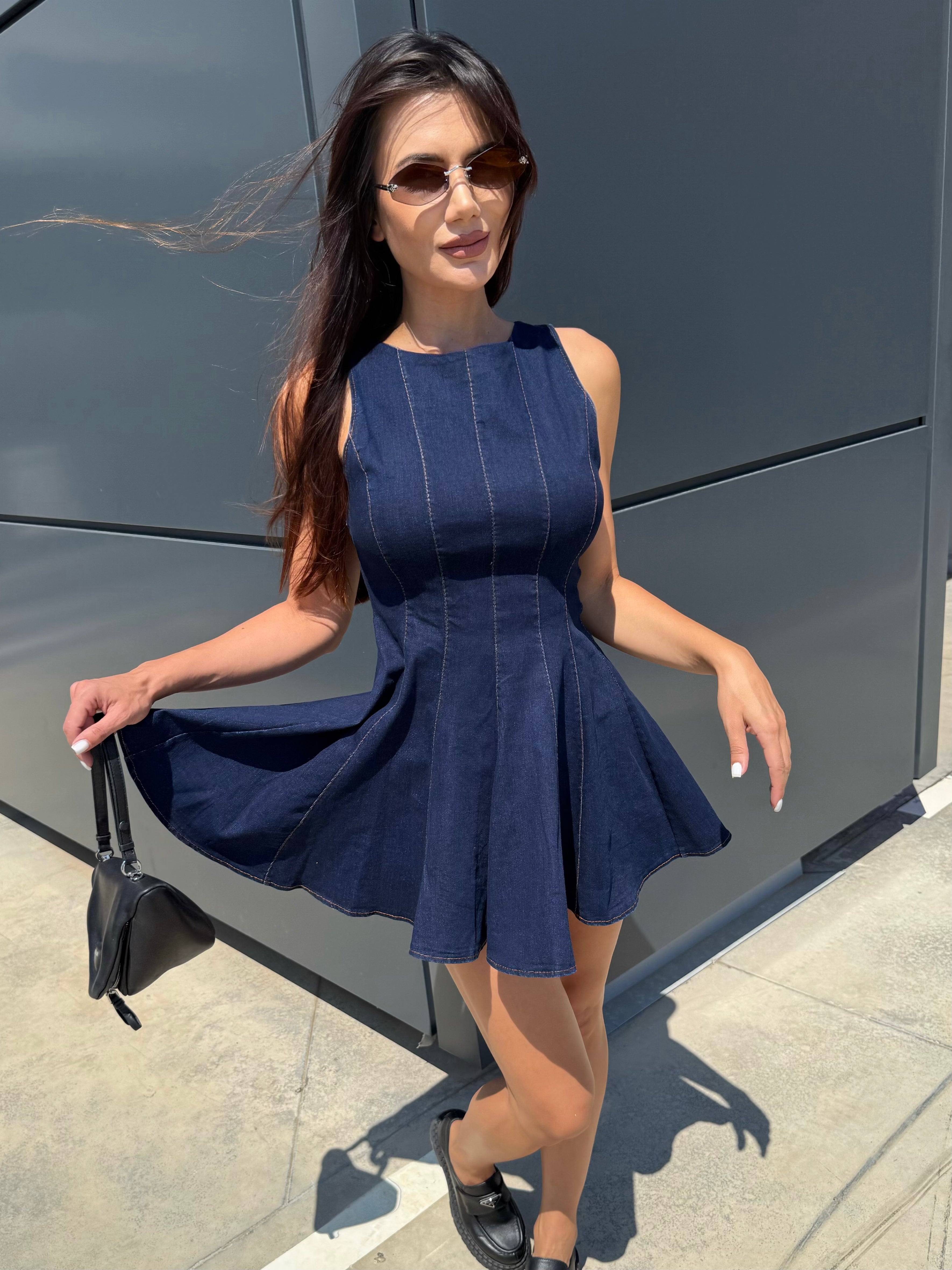 BLUE ICON – Denim mini dress with flared skirt
