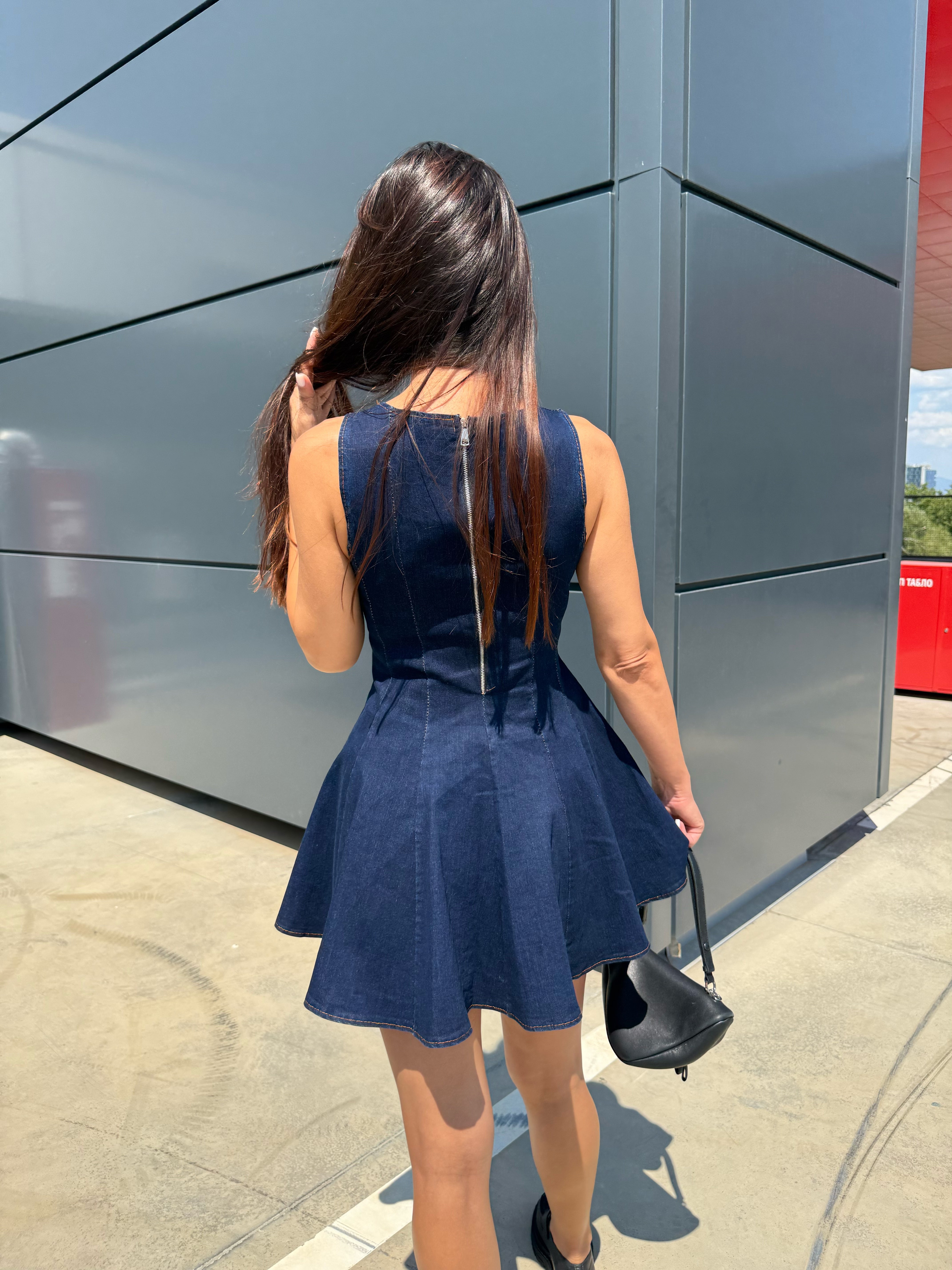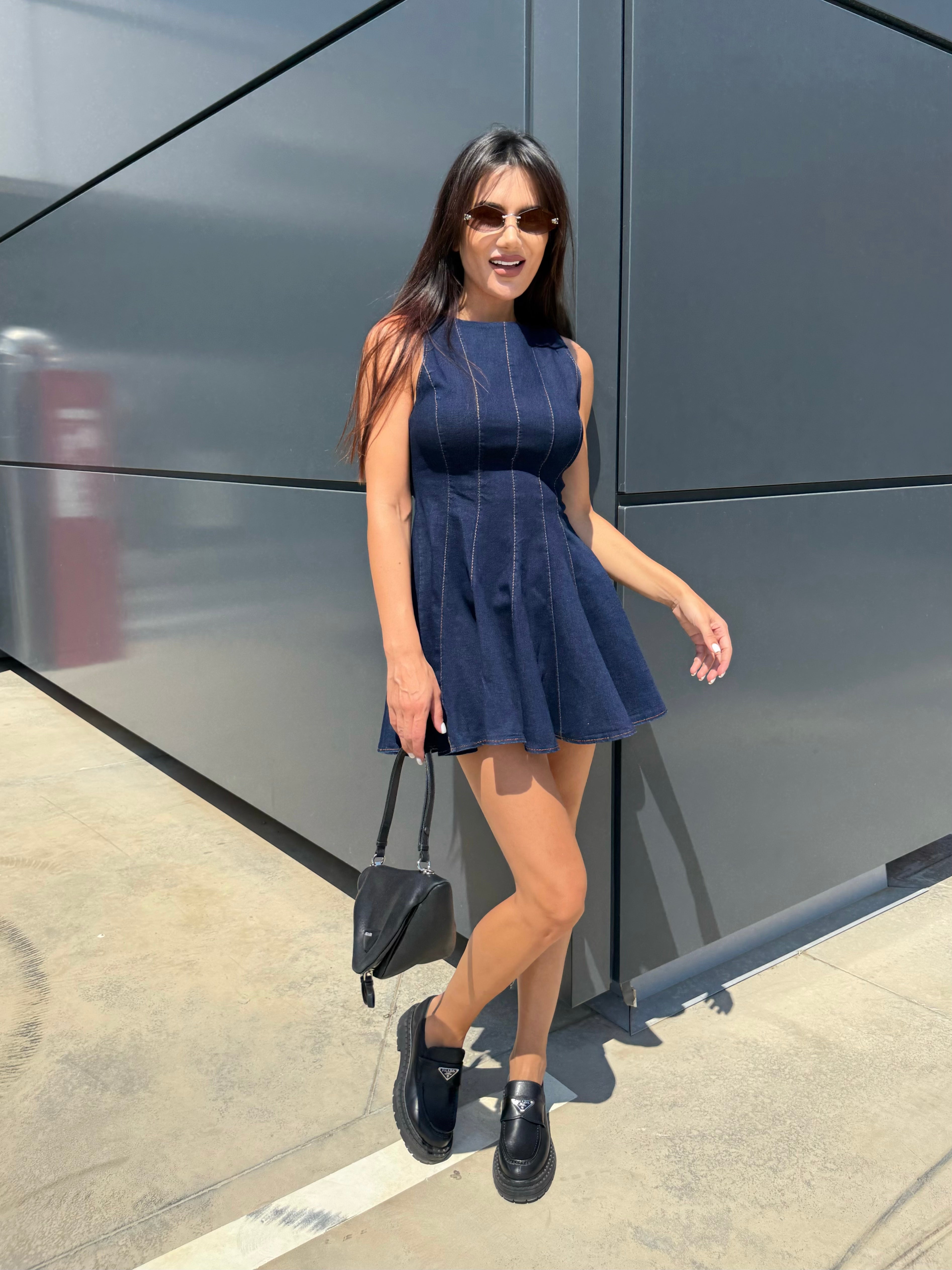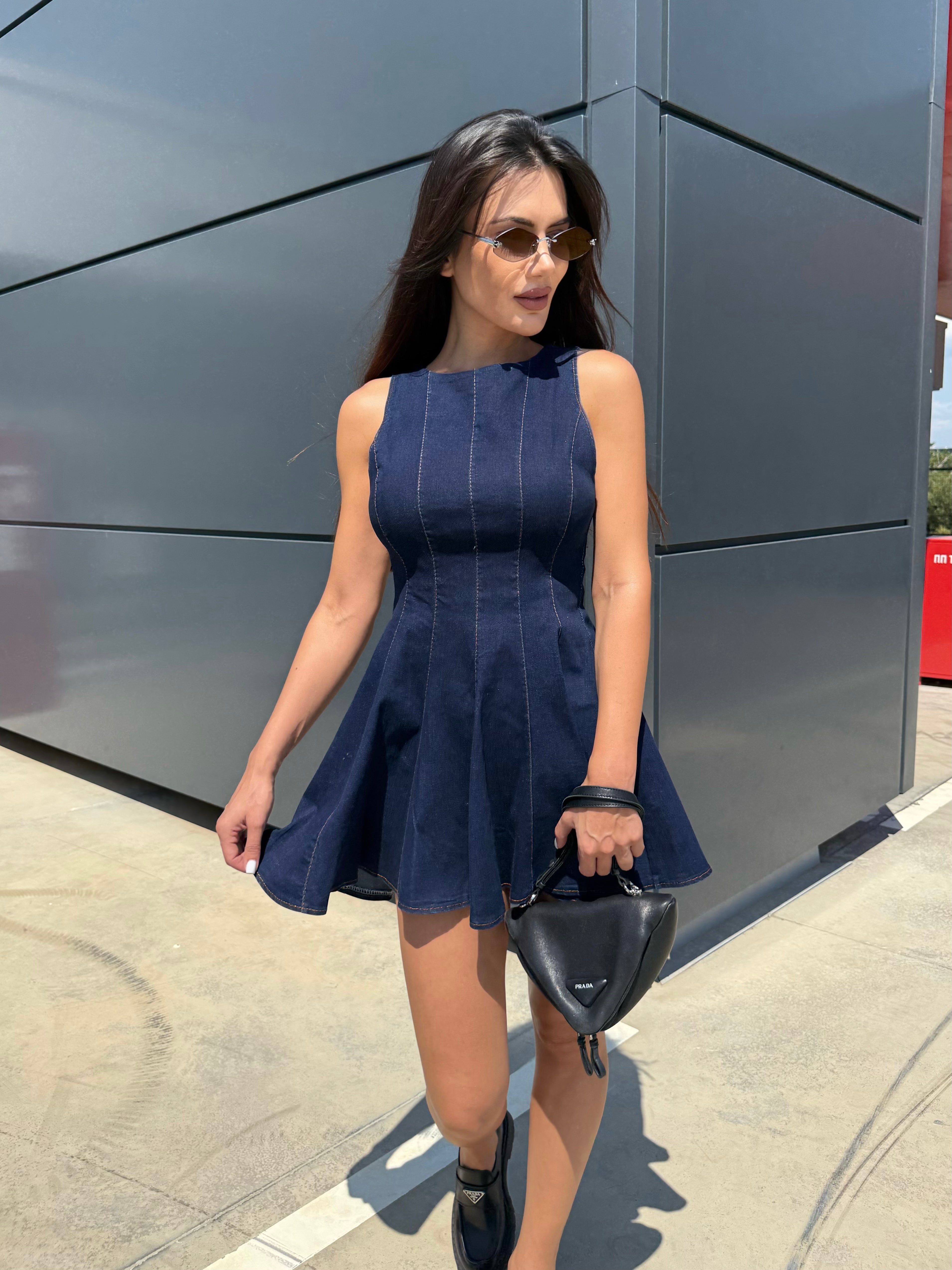 BLUE ICON – Denim mini dress with flared skirt