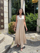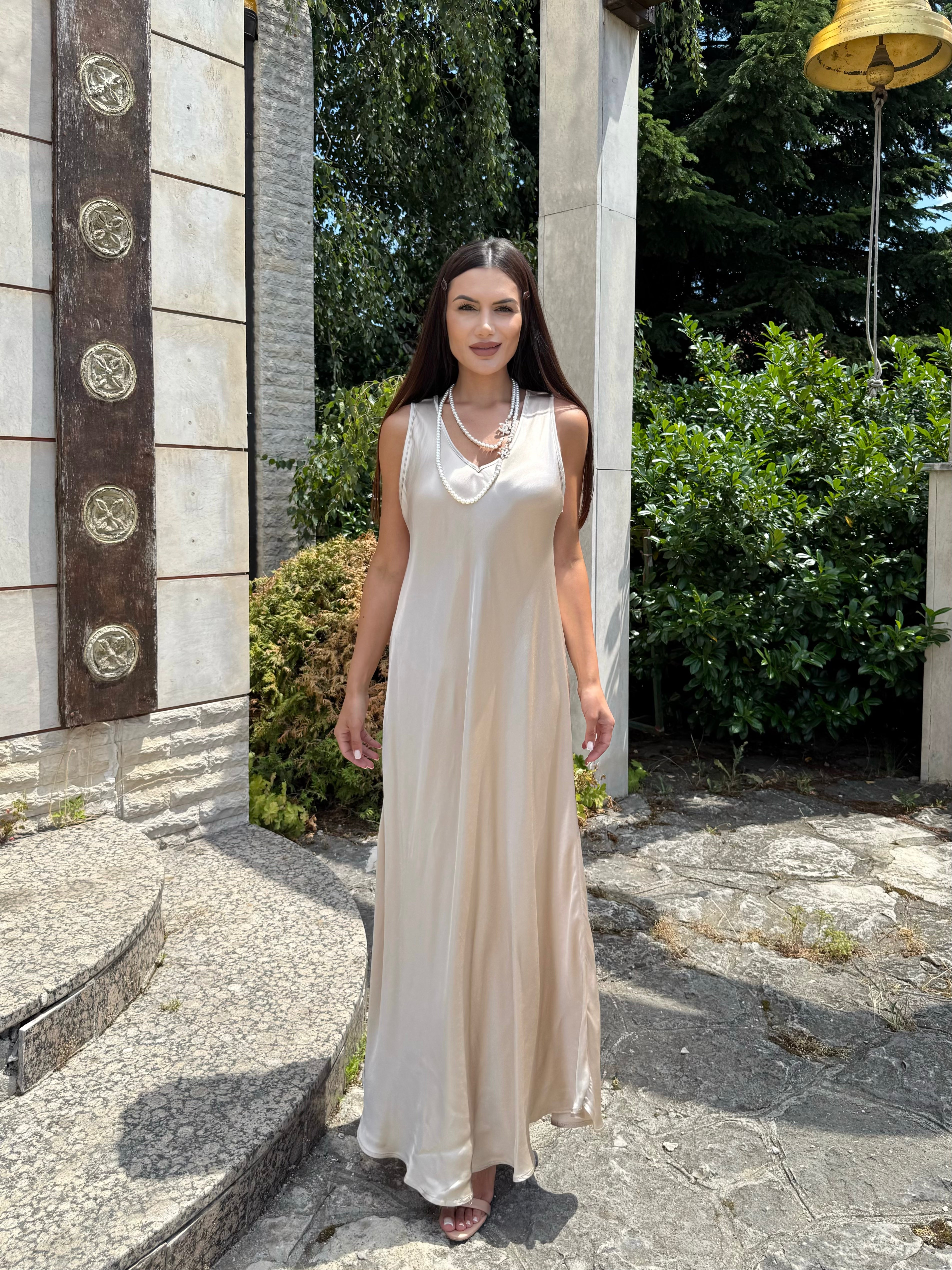 Champagne Glow is the epitome of refined femininity. Made from 100% high-quality viscose, it glides airily over the body and creates a feeling of lightness and luxury. Its universal cut embraces a chest circumference of 90 to 120 cm and a length of 144 cm, making it suitable for a variety of silhouettes.