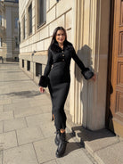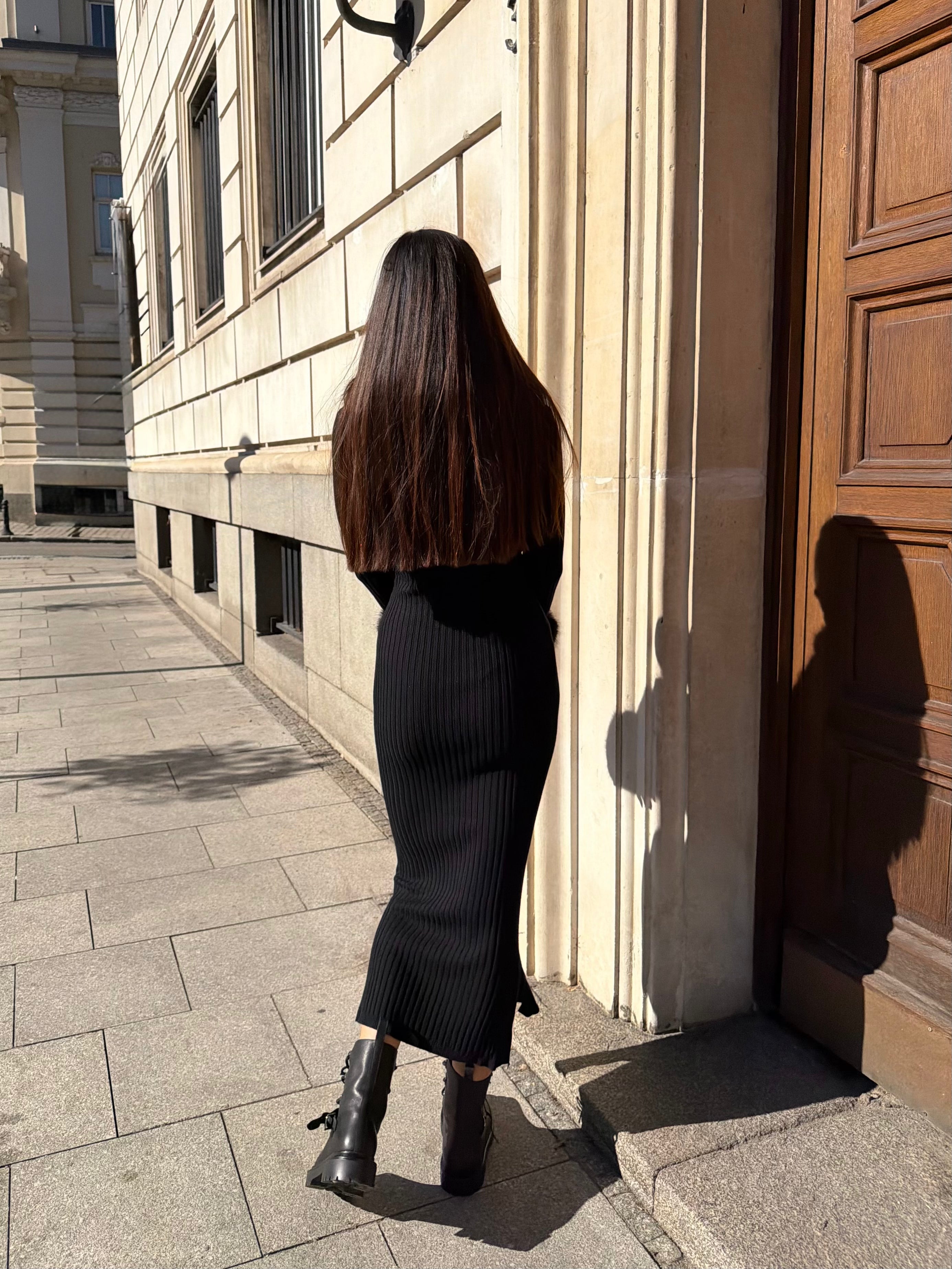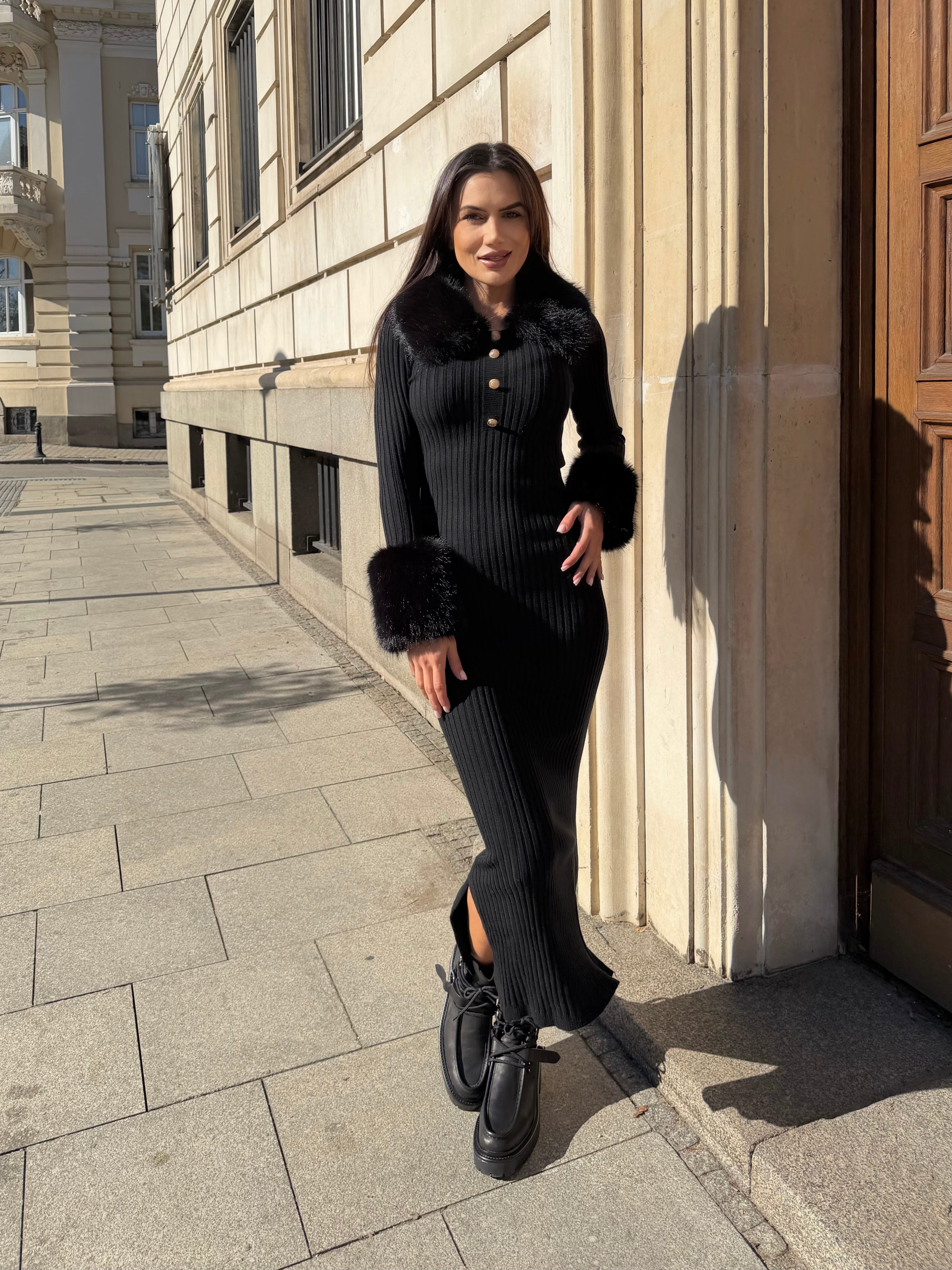 LUX FUR DRESS – дълга рокля от фино плетиво с кожи